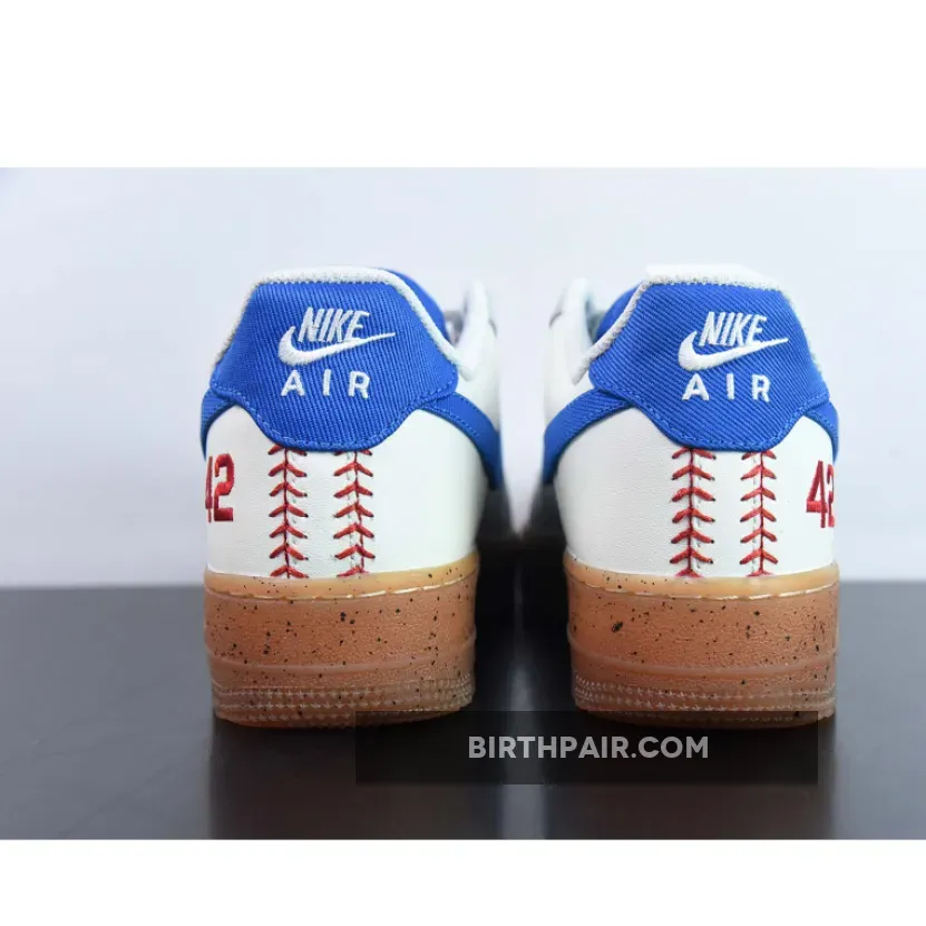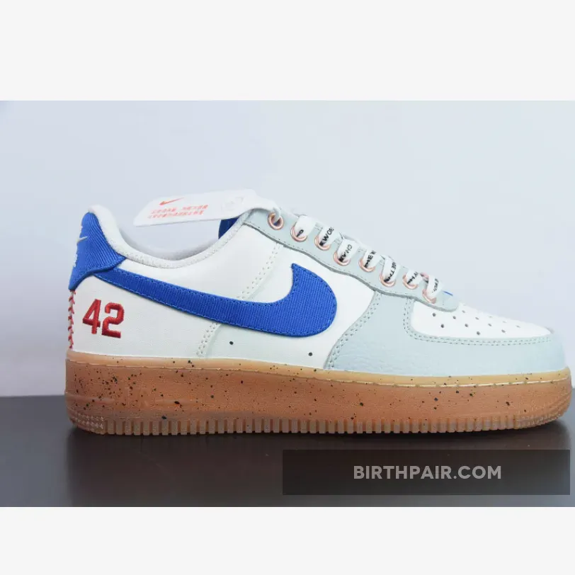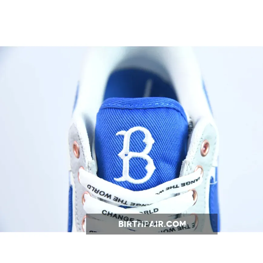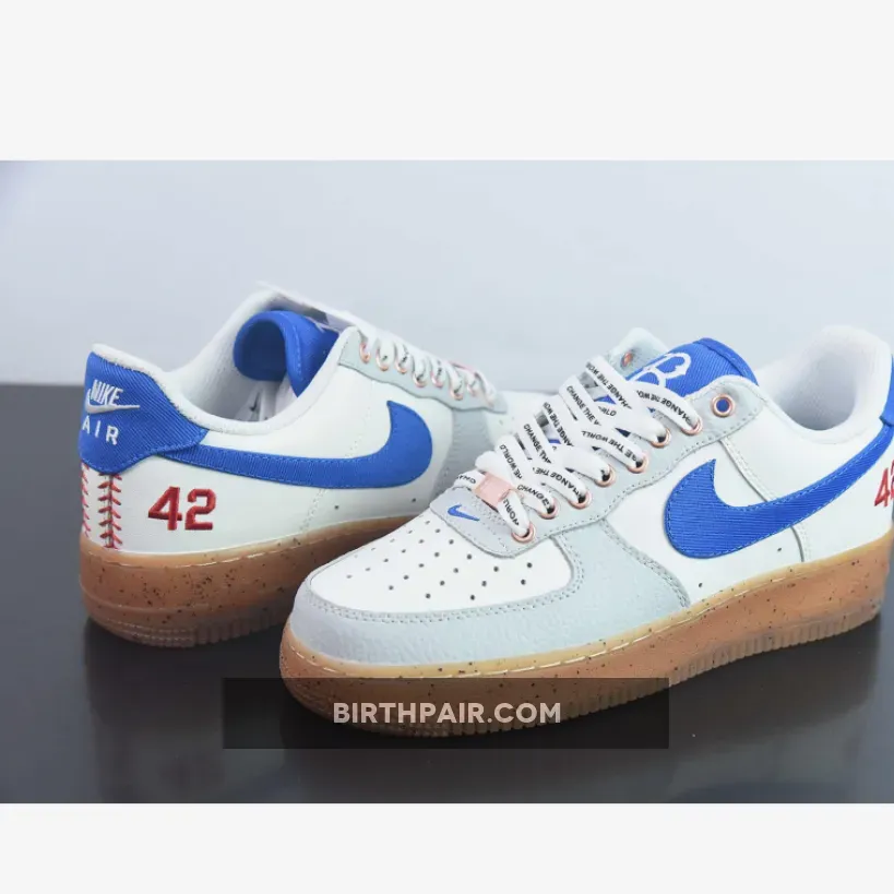 The Nike Air Force 1 Low “Jackie Robinson” gets covered in the team colors of the Brooklyn Dodgers which include white, grey and royal blue in smooth and tumbled leather throughout.