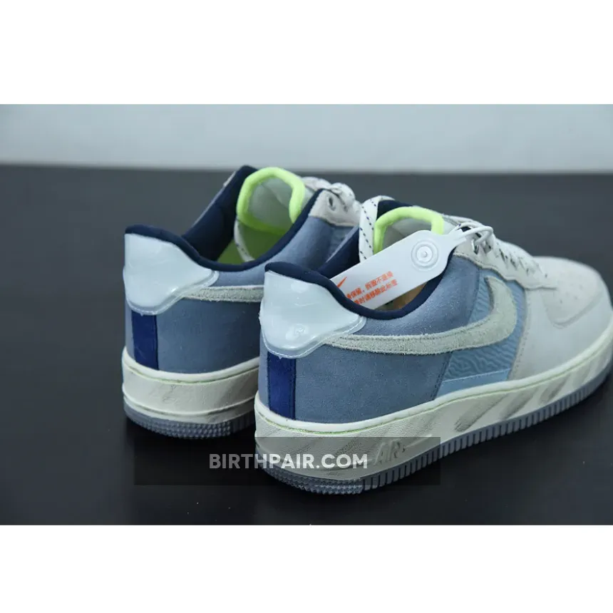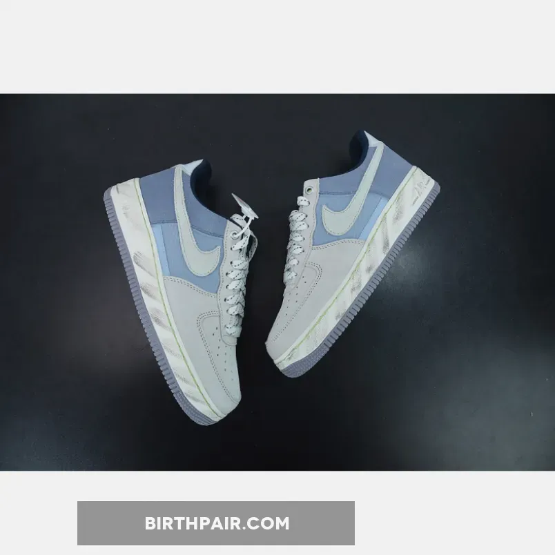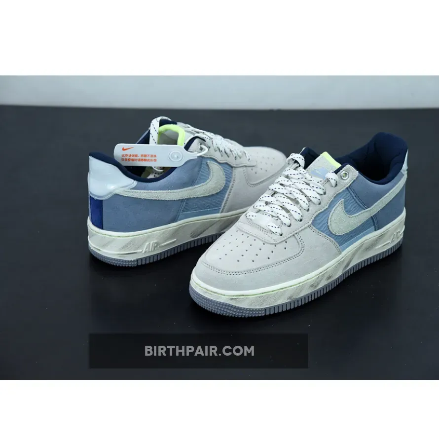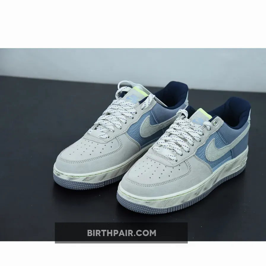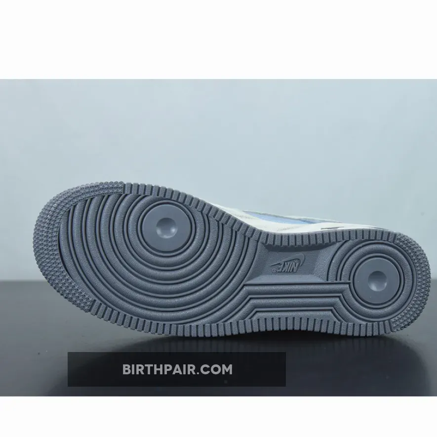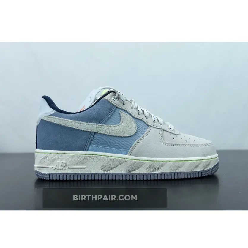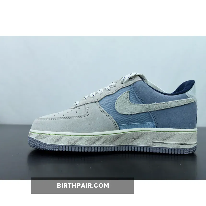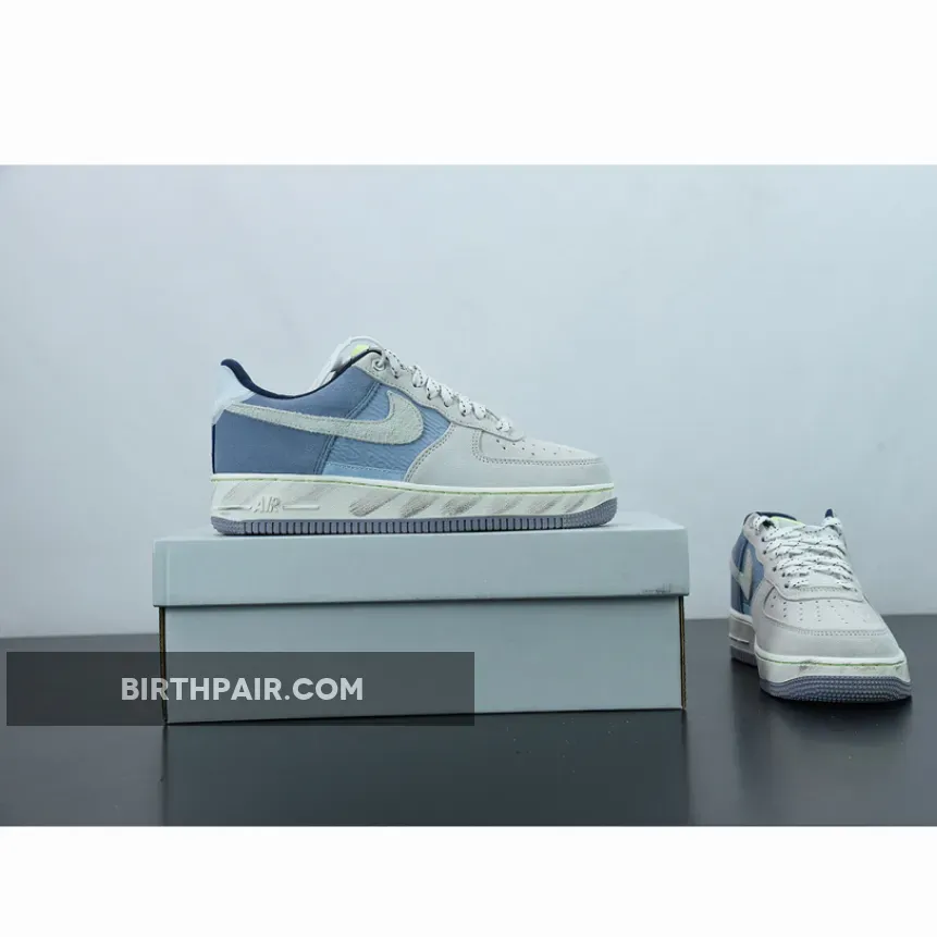 This Nike Air Force 1 Low features a Mountain White, Greystone, and Light Blue color combination. Constructed with nylon on the mid-foot underlay and suede on the overlays. Next, plastic is used on the heel tabs and a quilted-like material adorns the liner.