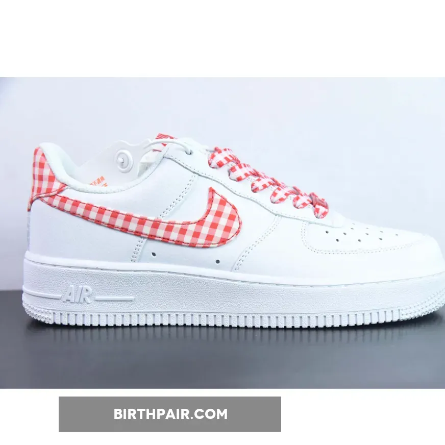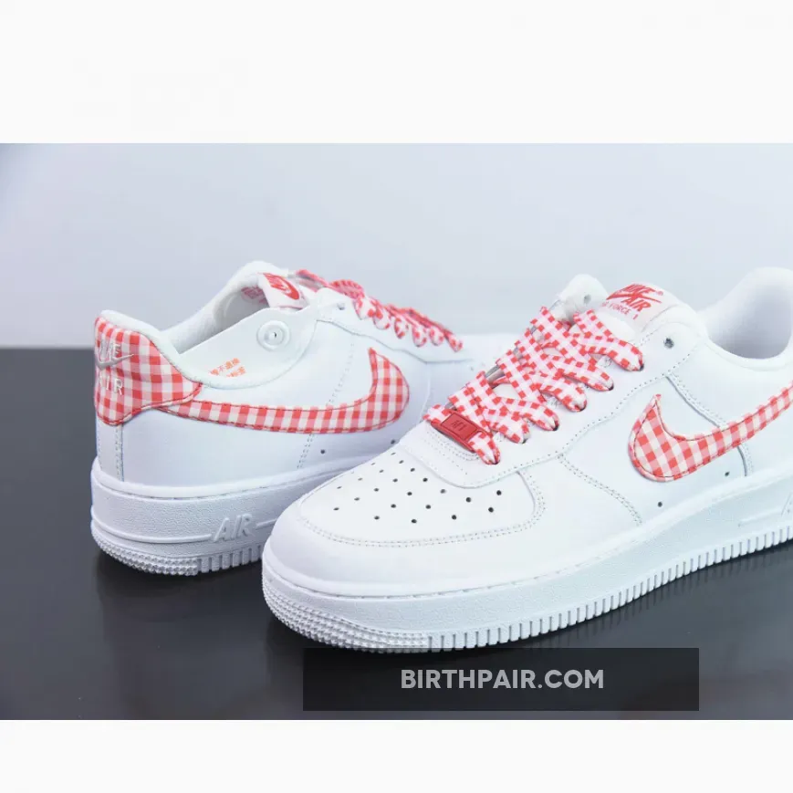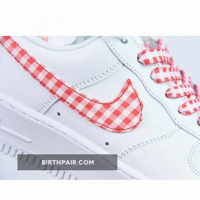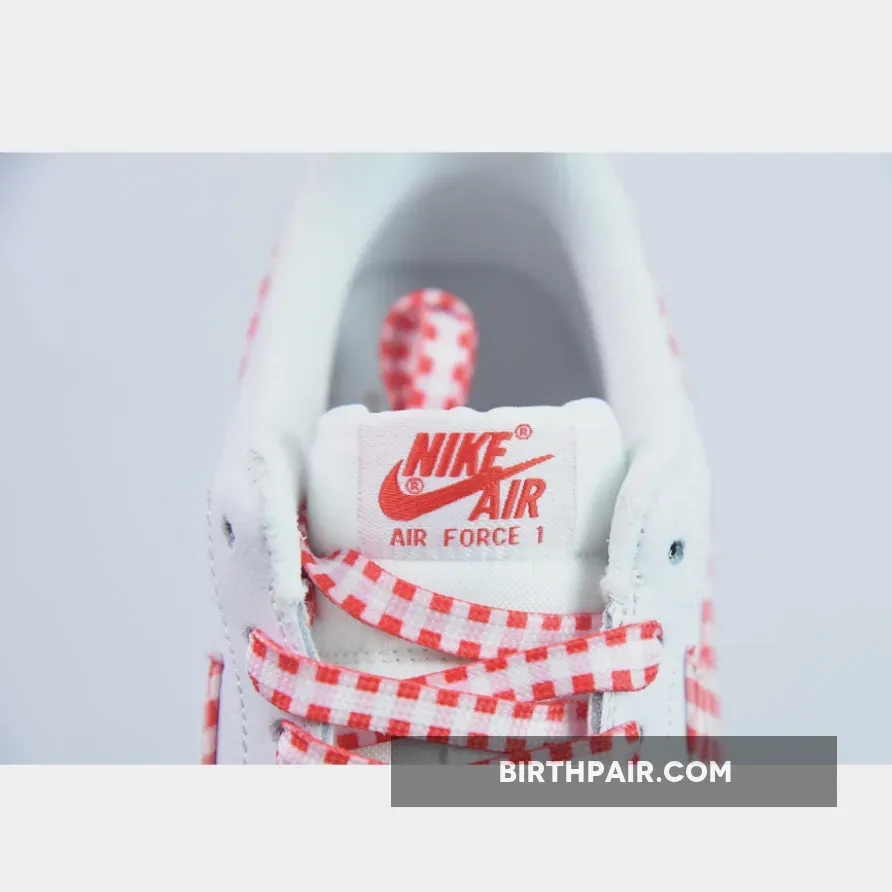 Solid color scheme with a picnic vibe! Air Force 1 Low Red Gingham offers clean lines and classic silhouette. Gingham print adds a playful touch while white leather offers timeless elegance. Perfect for everyday wear. #AF1Low #GinghamStyle #SneakerLove