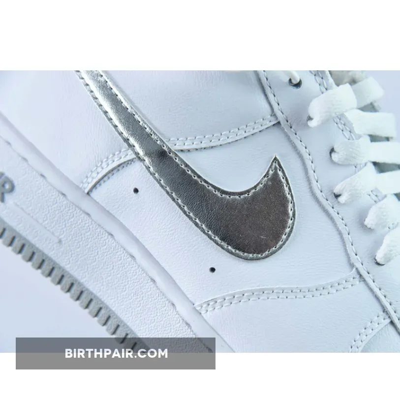 The Bruce Kilgore-designed Nike Air Force 1 celebrates its history by going back to its “Colour of the Month” series back in 1984. Believe it or not, this silhouette would have been shelved if not for this special edition that sold like hotcakes in Baltimore. Re-introducing the Nike Air Force 1 Low Metallic Silver.This low-cut AF1 has an all-white smooth leather upper from heel to toe except for the signature profile Swooshes that glide across the medial and lateral mid-panels. These Swooshes are in luxe-looking Metallic Silver. The tongue, mesh sock liner, laces and heel tab are all in pristine white. The tongue tabs and heel tabs feature retro Nike Air Force 1 branding.