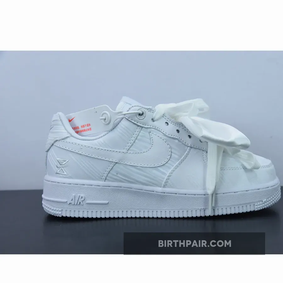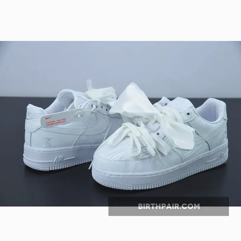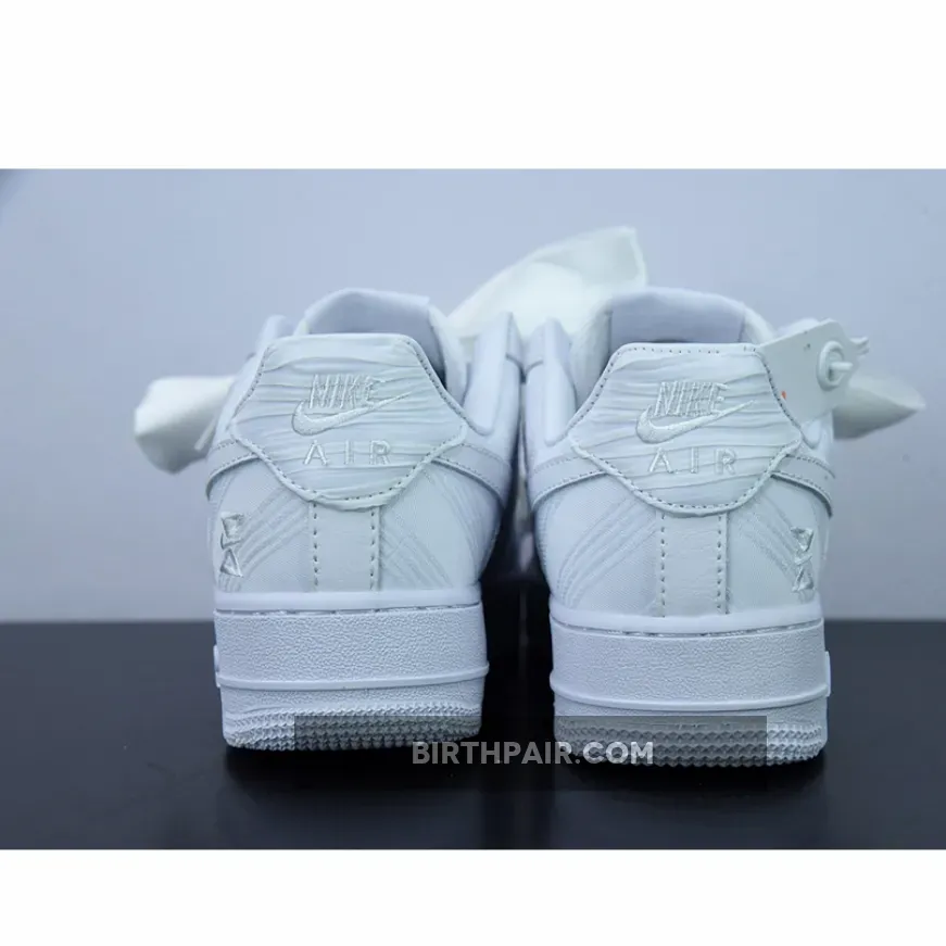 The Nike Air Force 1 has been covered in Swarovski crystals and pearls before. However, this time, a new variant comes wrapped up in a charming satin bow. Check out the Nike Air Force 1 Low White Bow. This AF1 low is an all-white ensemble, from the textured fabric on the toe cap and the heel to the pleated material on the toe cap, the mid-panel and the heel tab. The profile Swooshes on both sides of the shoe are in unobtrusive white tumbled leather.