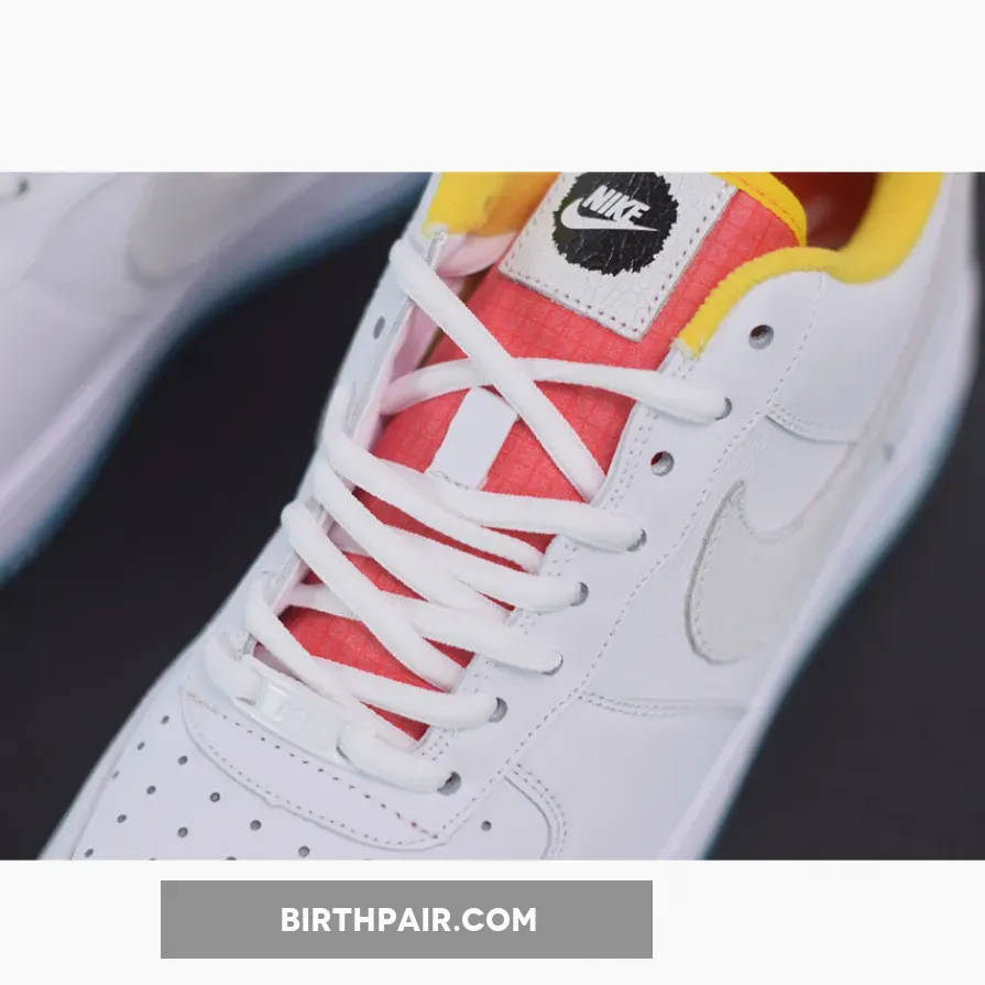 pictured above and below, starts out with a classic all-white base, but before too long the pair is transformed by-way-of Legend Blue-like outsoles, vibrant golden-yellow liners and flashes of pastel crimson on the ripstop-like tongue. But the latter isn’t the only noticeable material switch-up, with slatted mid panels and pre-cracked leather Swooshes and heel overlays. The latter is finished off with dual black and scribed branding; the script weaves its way in and out of the underlying logo that truly shows Nike’s attention to detail.
