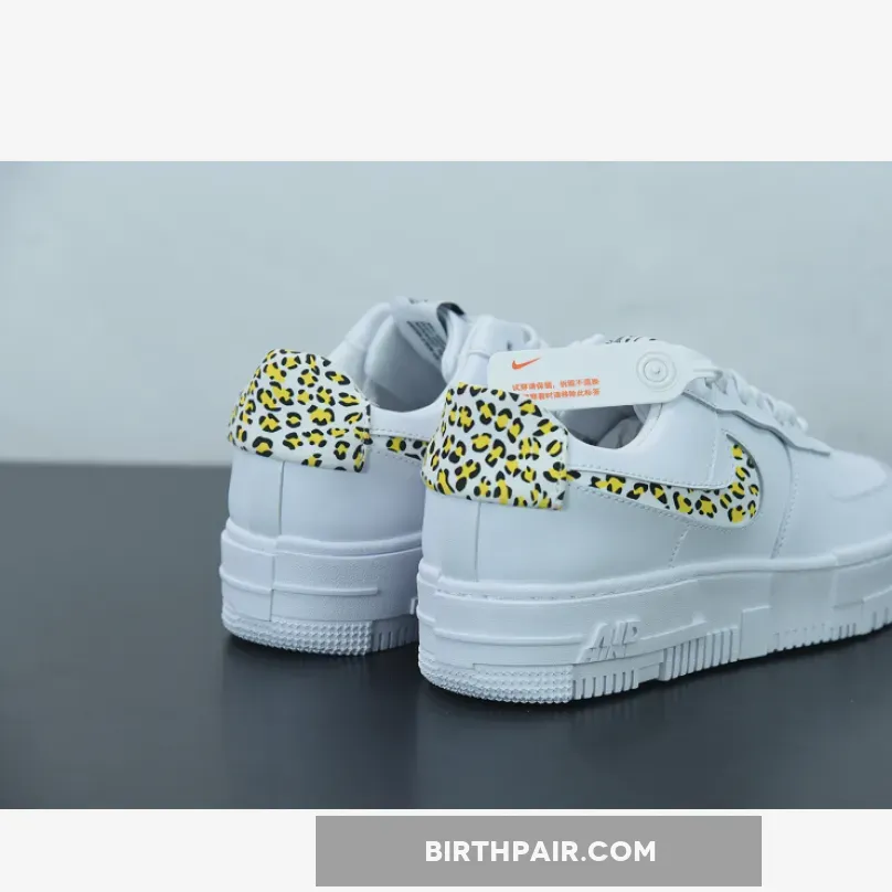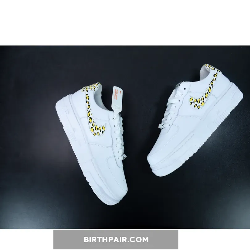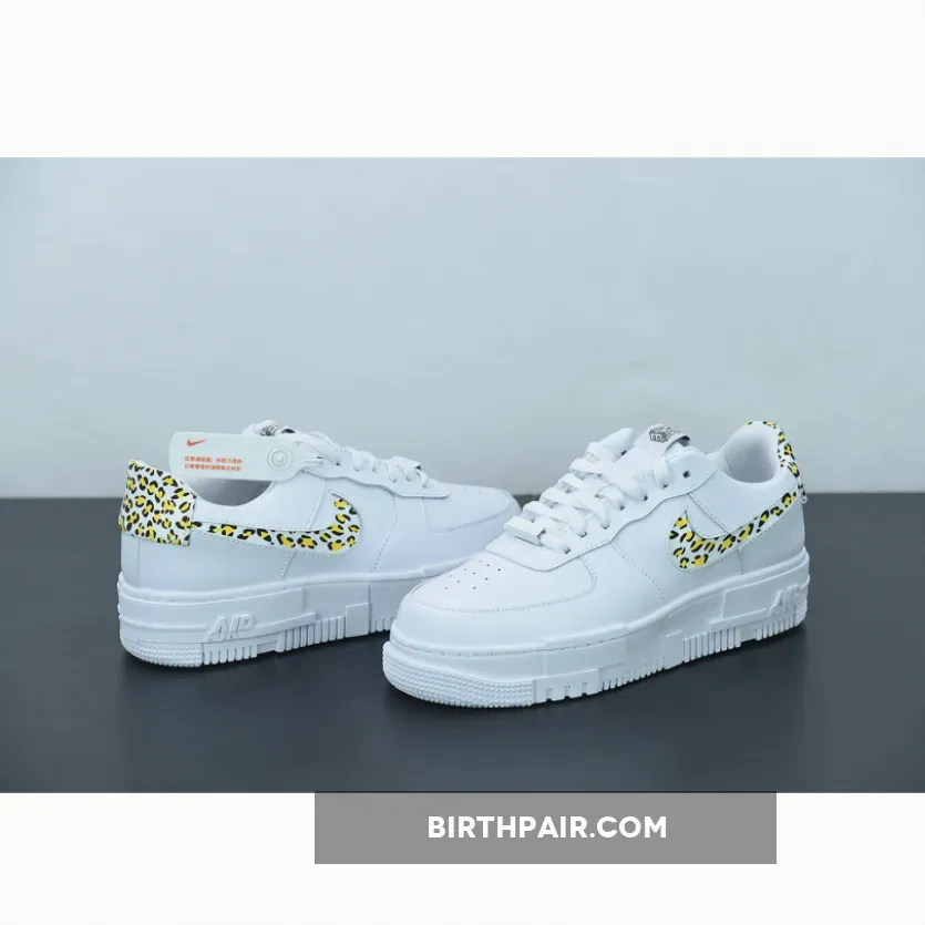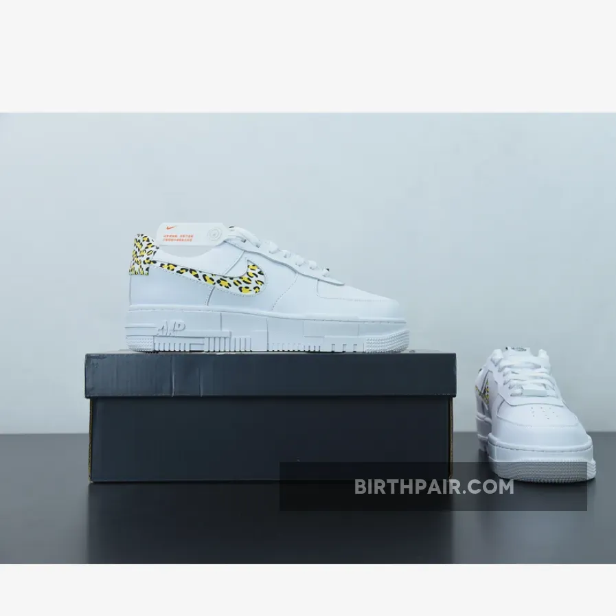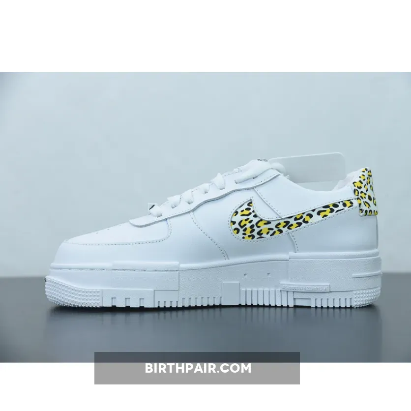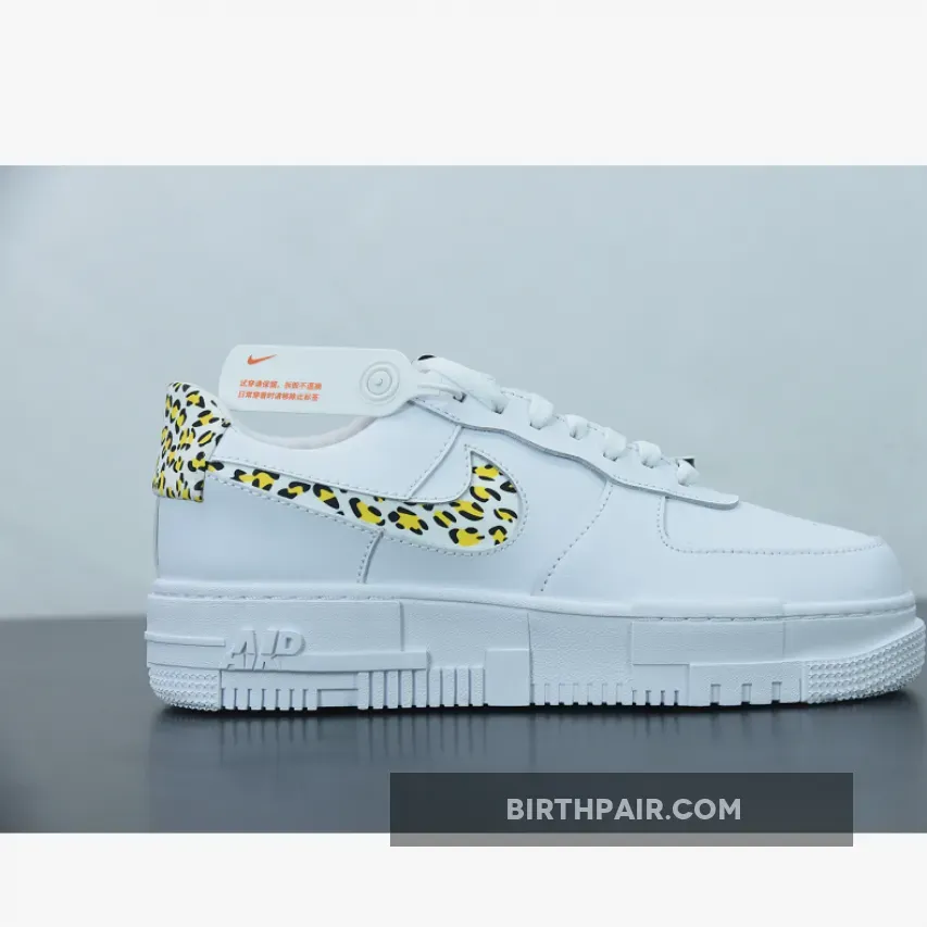 This offering of the Pixel-edition Nike Air Force 1 Low features a White leather upper with leopard suede print on the cut-out Swooshes and heels. Signature AF1 Pixel tongue labels and insoles atop a pixelated rubber sole completes the design.