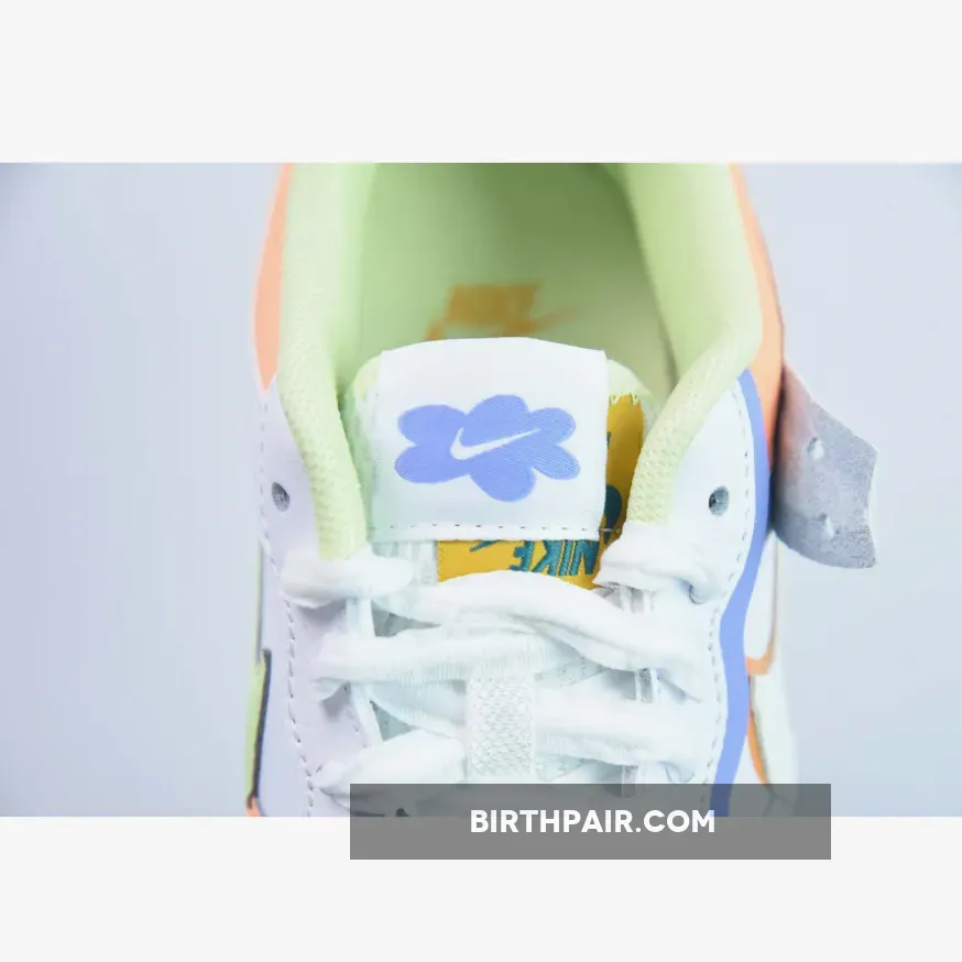 This women’s variation of the iconic Air Force 1 is defined by double detailing throughout its leather and mesh construction. The pair finishes with a unique flower motif at the tongue, crimped laces, and dice-like dubraes in translucent green. Next,Orange hits mark the toe, collar, and heel regularly alongside pops of a mild green.