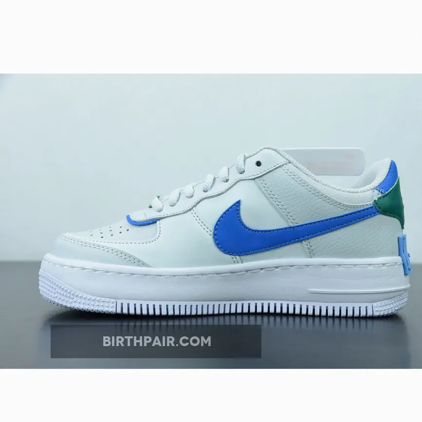 The Nike Air Force 1 Shadow has just expanded its colourway for the colder months. Check out the Nike Air Force 1 Shadow Photon Dust Malachite. This upper is dressed up mostly in light grey Photon Dust matte-finish tumbled leather from heel to toe. A vivid contrast of colour comes in the form of the double Swooshes on the lateral side, in Malachite tumbled leather and printed black.
