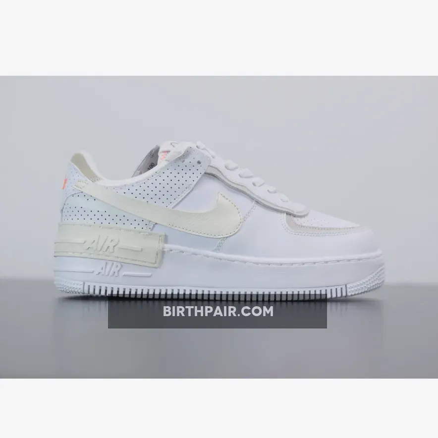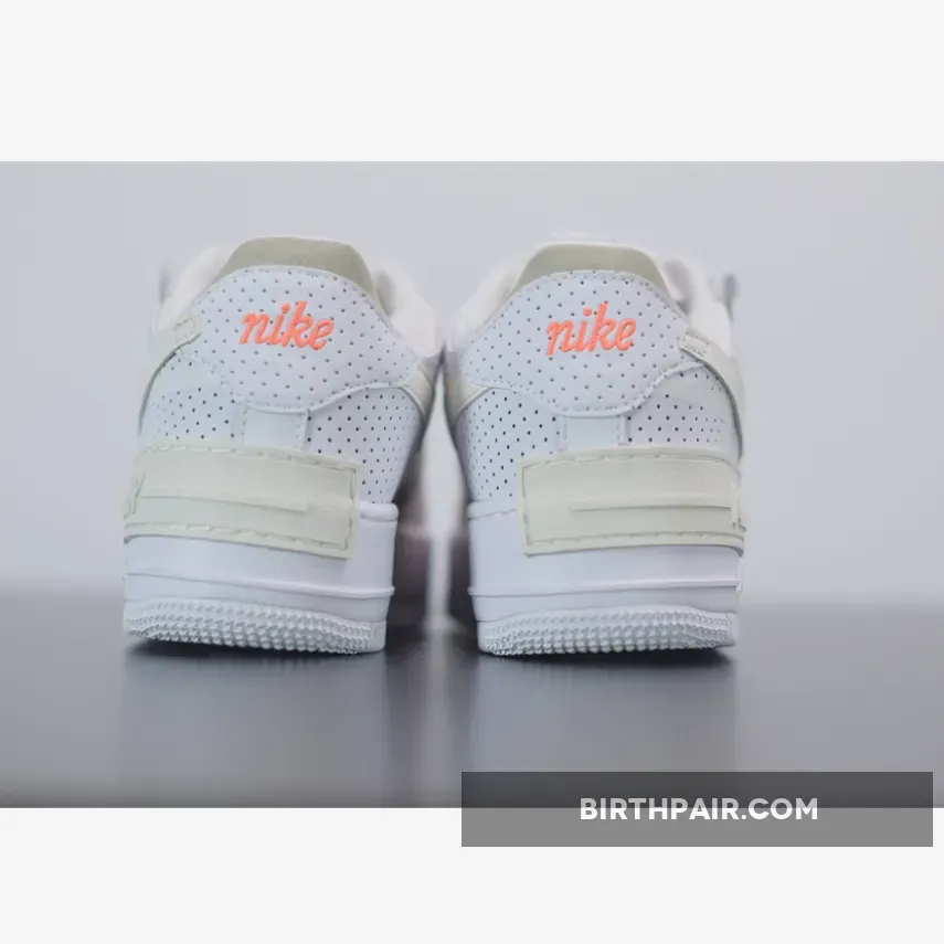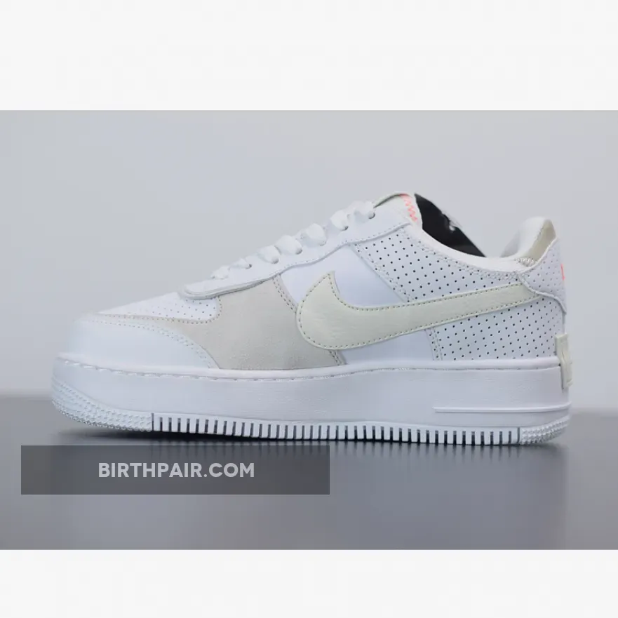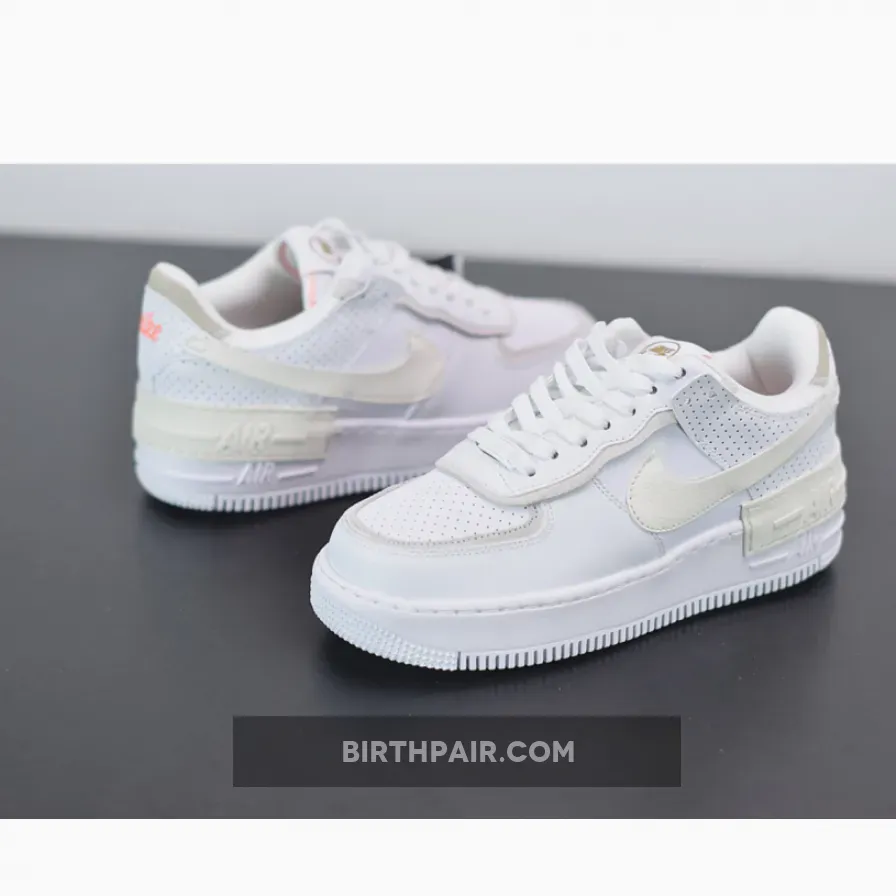 This white and cream Air Force 1 Shadow brings a more minimal aesthetic to the popular Swoosh silhouette, with new fabrics that haven’t been seen on this sneaker before. The upper looks to be crafted from a mixture of smooth leather and soft suede. Perforation holes scattered across the leather on the toe box, heel and collar allow for optimal airflow whilst adding a unique edge to this white cream AF1 Shadow.