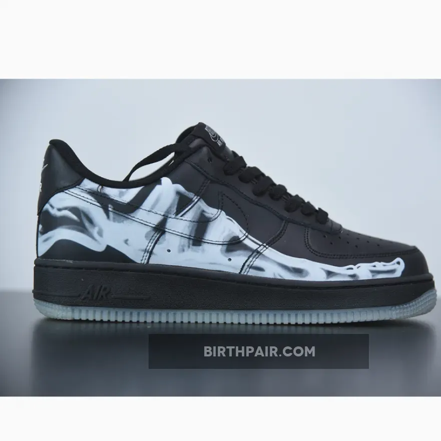 This offering of the Nike Air Force 1 sports the classic “Triple Black” color blocking. Much like 2018’s release, the shoe is highlighted with a Skeleton x-ray print on its upper.