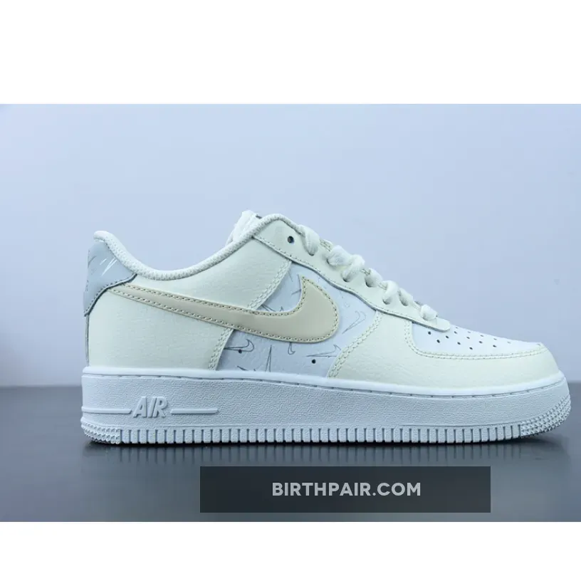 The Bruce Kilgore-designed Nike Air Force 1 has always been known for experimentation. Its new iteration, the Nike Air Force 1 Low White Sail Grey, combines minimalist colour blocking and an abundance of mini Swooshes. The base of the upper is a smooth and perforated white leather on the toe box and the mid-panel. The overlays are a tumbled leather in Sail on the toe cap, the eye stay panel, the heel panel and the signature profile Swooshes on both the medial and the lateral sides. The eye-catching detail on this shoe are the mini Swooshes in light grey scattered all over the mid-panel and the heel tab. But wait. There’s more. These mini Swooshes along with the main profile Swooshes have a reflective finish that makes them glow in the dark. This clean White-and-Sail combo sits atop a white sole unit. Lastly, a gold metallic AF1 deubré finishes off the shoe’s design. Get the surprising Nike Air Force 1 Low White Sail Grey on Our Store Supplier app and always be up-to-date with the latest Nike release dates.