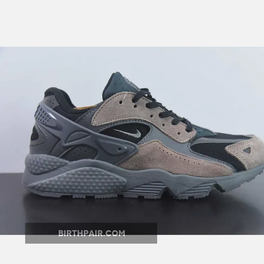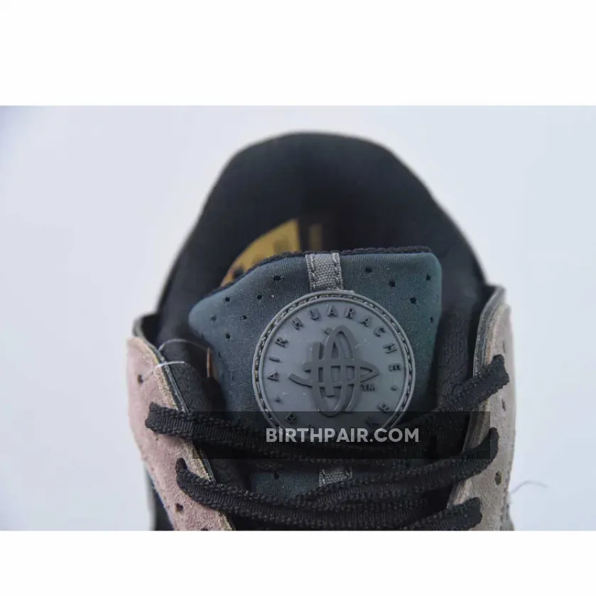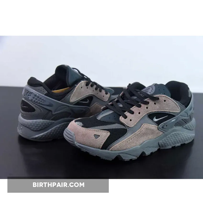 This pair is given a predominantly Black base that’s then paired up with overlays arriving in Medium Ash and Anthracite. A miniature swoosh also lands on the profiles, delivering a big change from Hatfield’s original Nike Air Huarache idea.