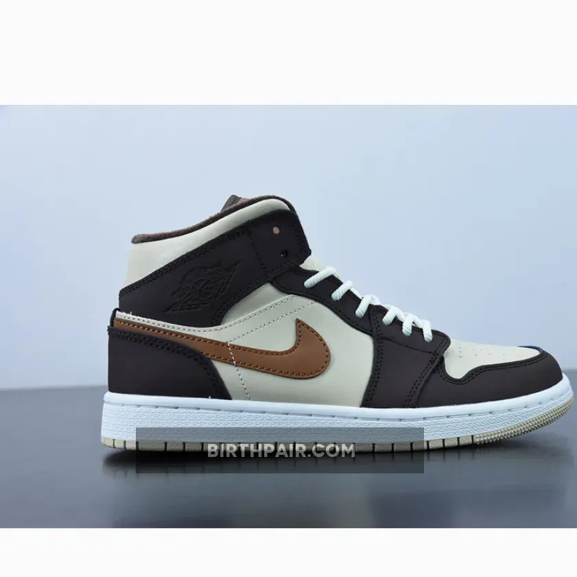 The Women’s Air Jordan 1 Mid SE ‘Cream Dark Chocolate’ gives the classic silhouette a refreshed build in subdued earth tones. Braided rope laces secure the upper, featuring a tan leather base with dark brown nubuck overlays and a chestnut Swoosh. Plush fleece lines the mid-cut collar, while faux quilted detailing decorates the tongue, marked with a Jumpman-debossed tag in brown leather.