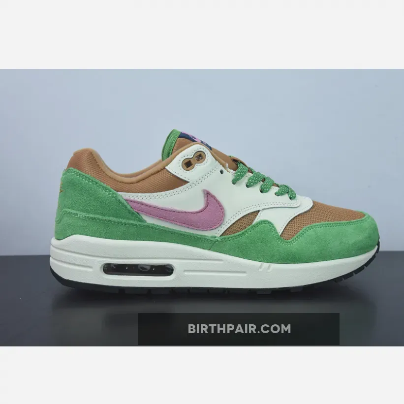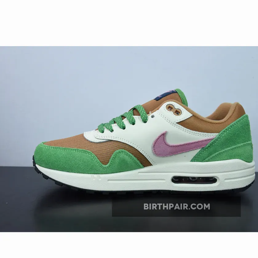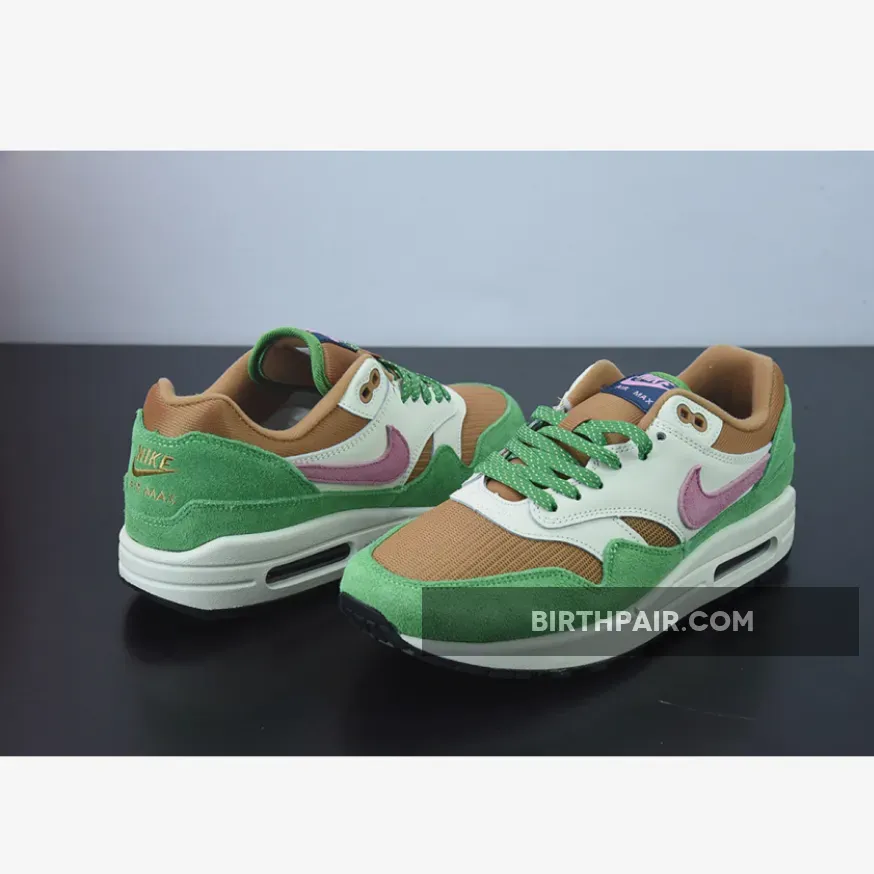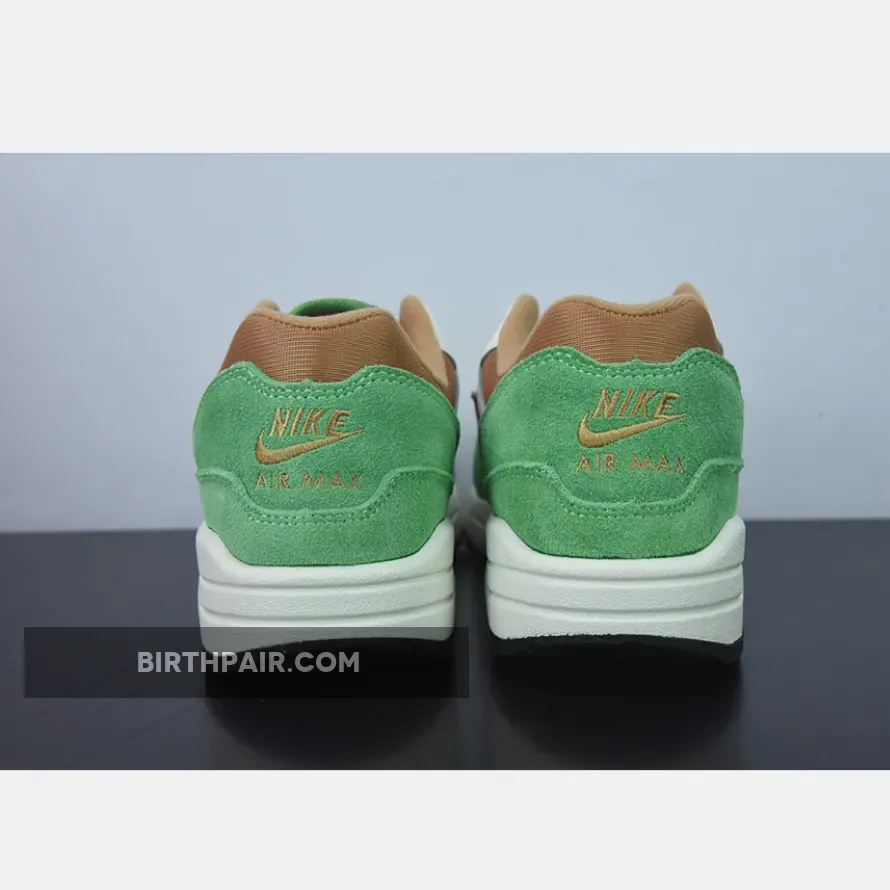 Get your feet ready for spring with Nike Air Max 1 Treeline’s nature-inspired colourway. A sheeny copper-coloured mesh base kicks things off, while the matching plush tongue and collar continue the luxurious feel of the pair. Furthering the elegance of these Air Max 1 sneakers is an understated smooth beige leather overlay at the side panel. Meanwhile, a green suede mudguard and heel complete the lush palette of this Air Max 1.
