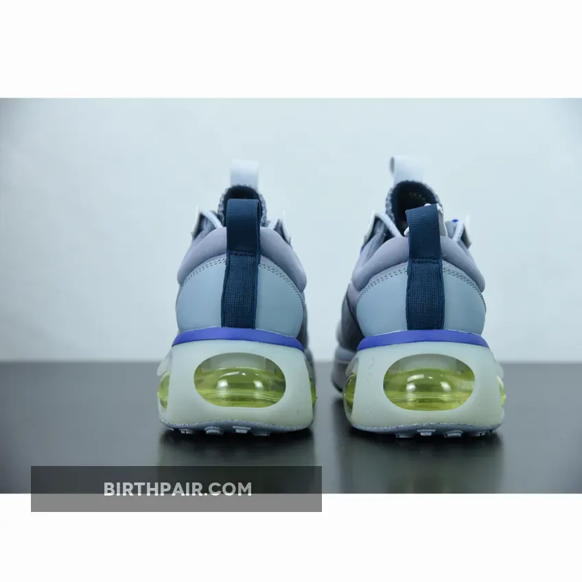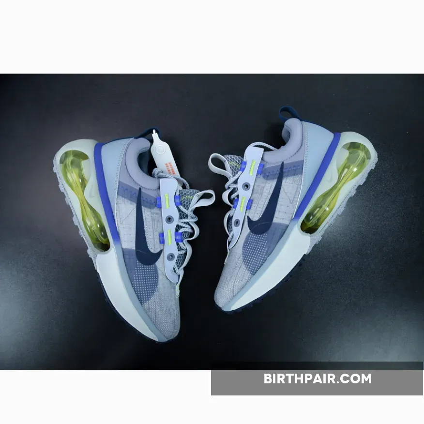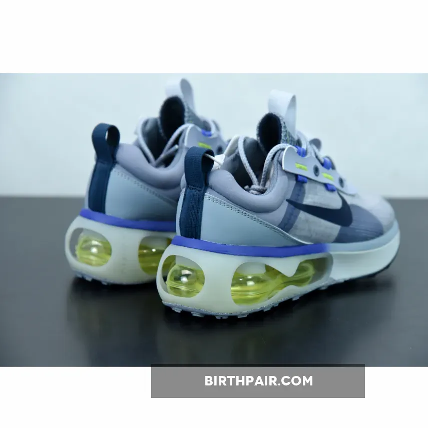 Meshes, dotted decals, and perforations continue the geometric theme across the model. While the lateral side sports a navy Swoosh decal, the medial side opts for matching blue branded overlays and mudguards that create a space-age appearance. Elements such as the padded collar and exaggerated lacestays are also a reflection of modern design trends in footwear. As for the sole unit, the pair sees a blue and white gradient overly stacked above an Air Max-cushioned midsole. The heel reveals a tall green Air unit that opts for a unique peapod shape to further amp up the futuristic factor of the upcoming offering.