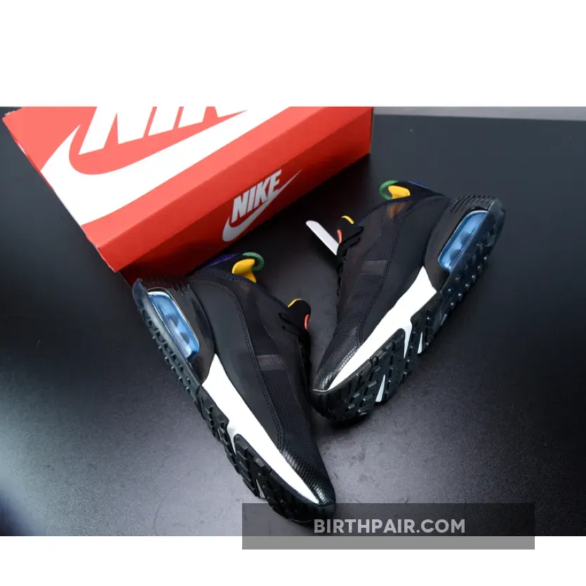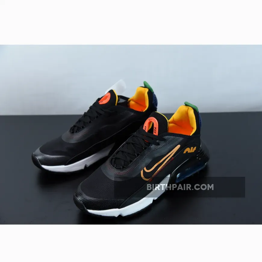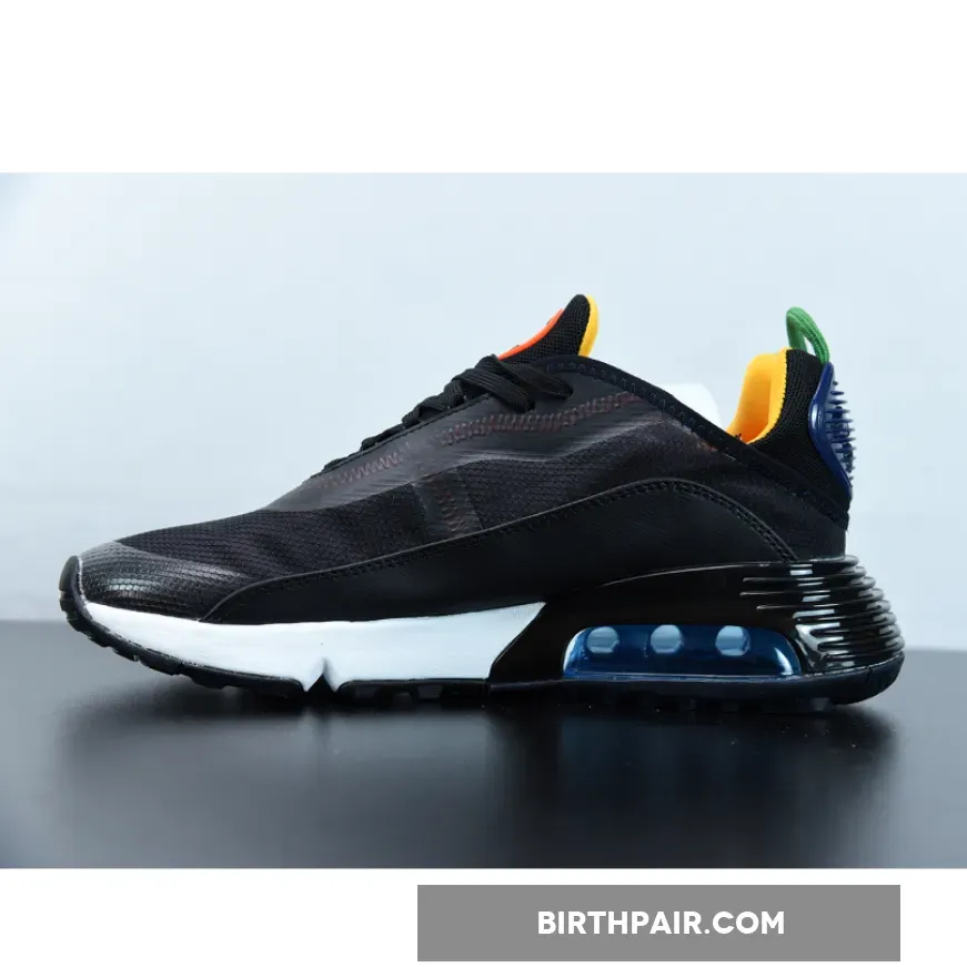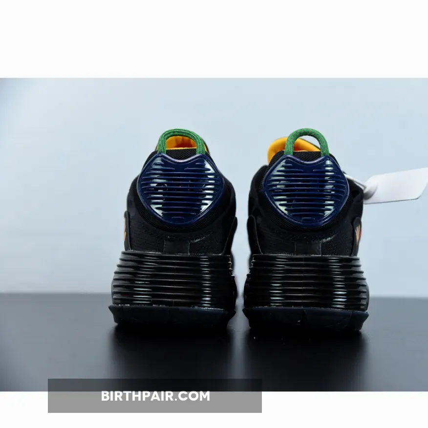 This Air Max 2090 comes dressed in a Dark Grey, Black, Chile Red, and University Gold color combination. Furthermore, Black mesh runs across the upper while the same shade covers the textile leather mudguard. Both Red and Gold accents land on the Swoosh hinted on the tongue, exposed stitching, and liner. Following, Blue adorns the heel and is placed within the Air Max unit while Green appears on the heel loop.