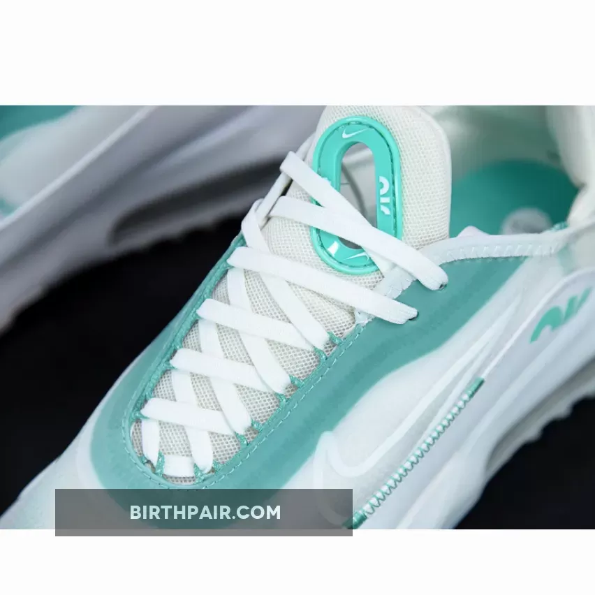 draw from the future with neons and pristine, nearly metallic-like neutrals — its inaugural pair the most definitive of this very approach. And after taking a detour towards heritage with a Duck Camo makeover, the model is back on track in Aurora Green, outfitting much of its synthetic panels with a polish of white. Leather mudguards, toolings, and attached molds all bear the same bright shade, leaving room for the titular shade to stand apart at the scattered half-drawn “air” logos, the contrast stitch, and the barely revealed wash at the tongue.