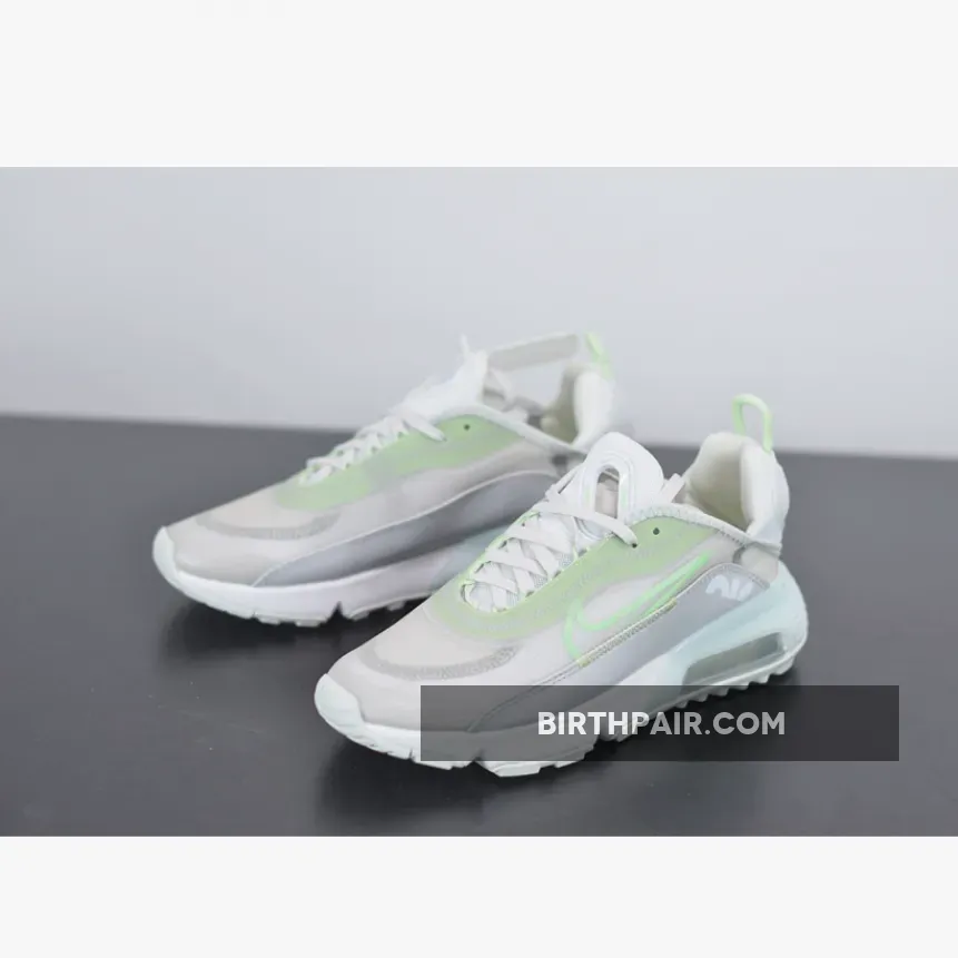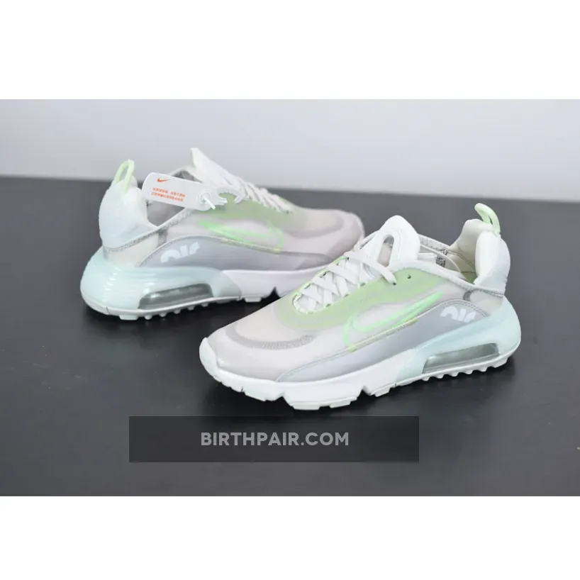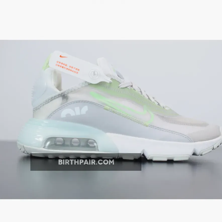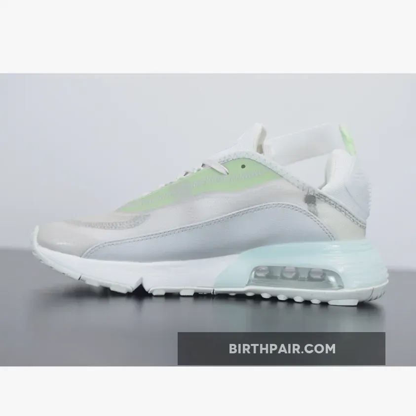 The Nike Air Max 2090 Vast Grey offers a sleek, modern design with classic Air Max elements. The combination of see-through synthetic material and Vapor Green accents creates a unique and stylish look. The shoe is comfortable and supportive, perfect for everyday wear or sporty activities. Overall, a great pair of sneakers for discerning enthusiasts.