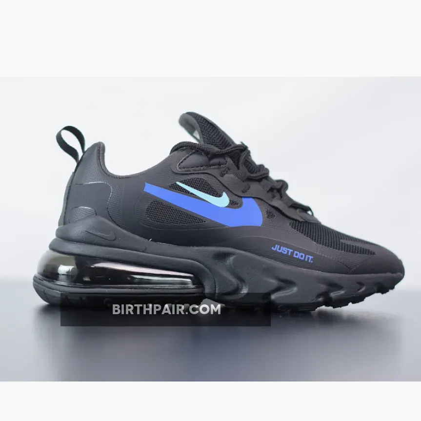 It’s time to get your hands on the Nike Air Max 270 React Just Do It Black. Versatile and guaranteed to absolutely smash the test of time, subtle details come in the form of branding, trend-led colours and industry-leading technology. Made to extend your run and improve performance, they tick every box.Crafted with a breathable mesh upper, synthetic overlays are added to increase durability and stability. Nike’s iconic Swoosh logo adorns the side and heel while the AIR270 branding is on the tongue for a final touch of detail. Designed to propel you forward and extend your stride, you’ll effortlessly reach your new personal best in these.Ultra stylish thanks to their pared-back black and blue colourway, they’re durable enough to wear every day and functional enough to wear on your Sunday run. Sure to stand out among your collection, the final touch comes in the form of “Just Do It” lettering to the side.Available to cop right now, add the Nike Air Max 270 React Just Do It Black and we promise you’ll want to wear them with absolutely everything.