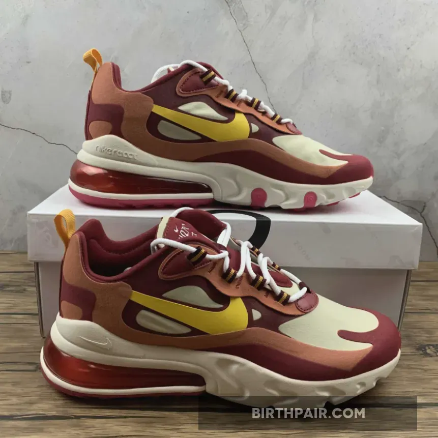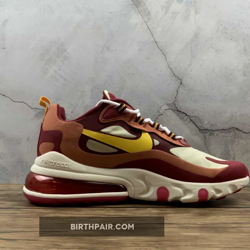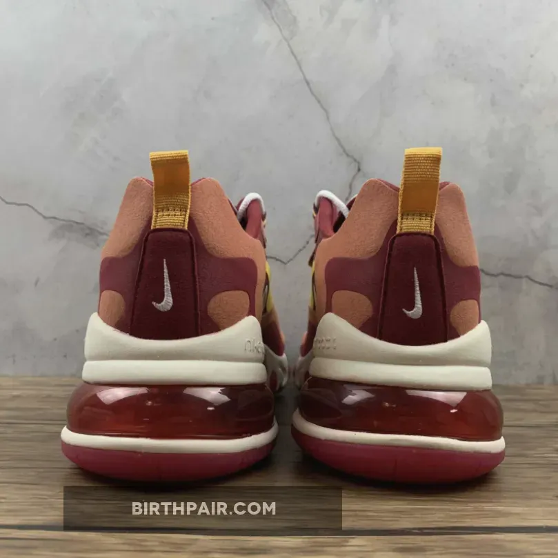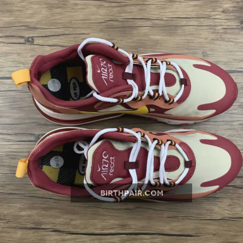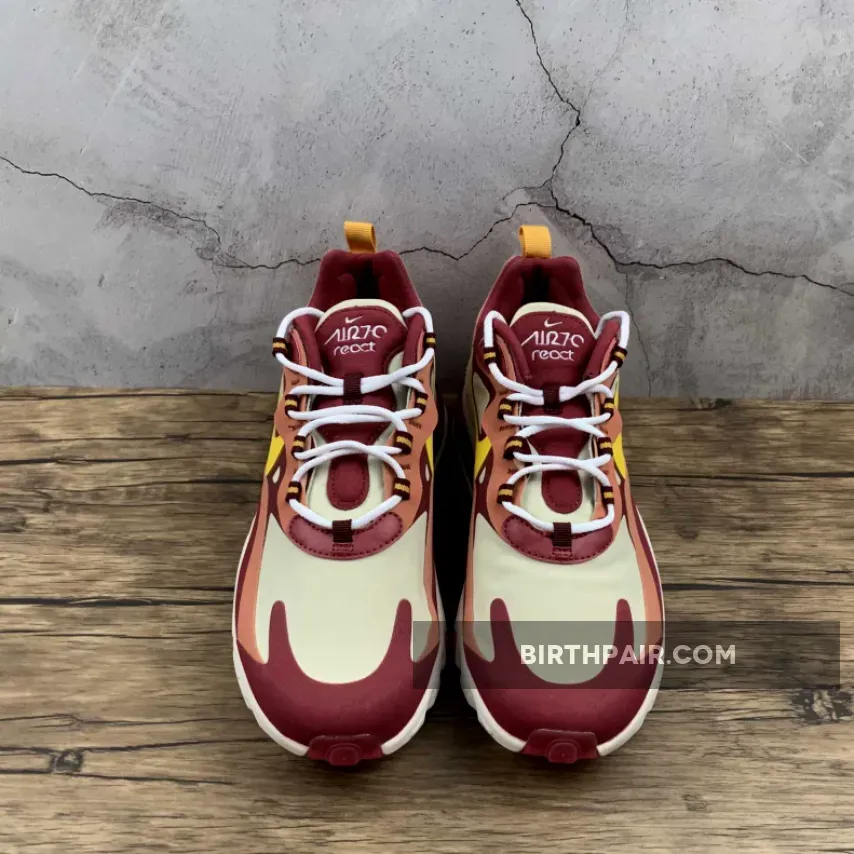 The brand new Nike Air Max 270 React Red Peach is fiery hot. Literally. The latest and greatest colourway to launch as part of the AM270R line, this high heat hybrid is a must cop for any sneaker collection. Made for those who want to inject a vibrant pop of colour into their autumn rotations, if that sounds a bit like you, then this shoe has your name written all over it.Featuring the revolutionary no-sew upper that caught the imaginations of sneakerheads earlier this year, the Air Max 270 React Red Peach is painted in various shades of red and touched up with cream accents across the laterals, medials and the toe box. A striking yellow Swoosh shoots across the side panels, and this is complemented by the eyestays that help tie the shoe together.Now, you can’t talk about this new shoe without mentioning its innovative silhouette. With React foam at the front, the heel is made from an Air bubble for twice the comfort and response. This is lined with a cherry red rubber outsole, finalising the design.October 21st is the date you need to remember if you want the Nike Air Max 270 React Red Peach in your personal collection. While it may not sell out instantly, these popular sizes are going to fly off the shelves, so make sure you grab yours while it’s in stock.