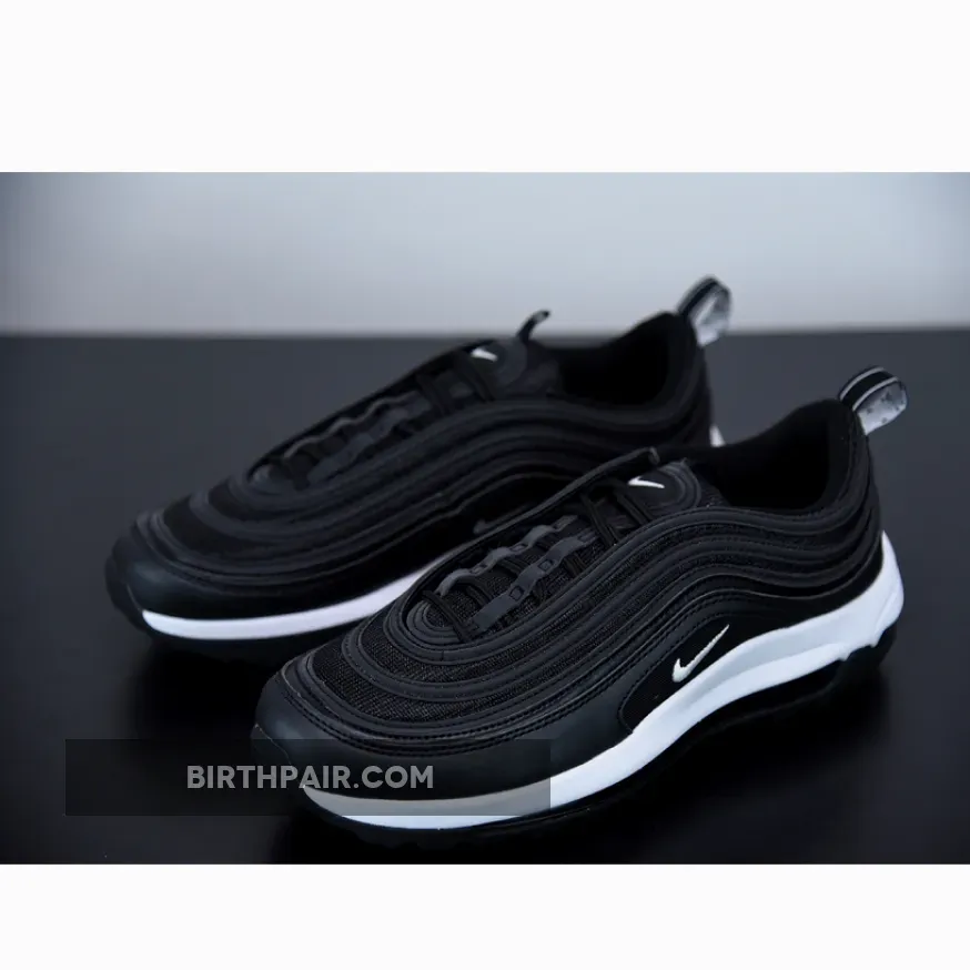 The Swoosh team, after dressing up the Air Max 1 G with a “Jade Aura” outfit, is re-routing our attention back to the Air Max 97 Golf to capture an official look at its newest member. Last seen with a cleaner white and grey makeup, the silhouette keeps its greyscale nature intact, but transitions to a much darker composition by dialing down to a simple black and white blend.