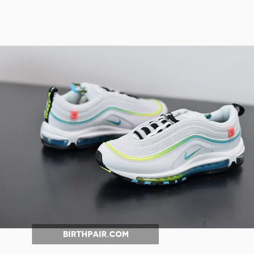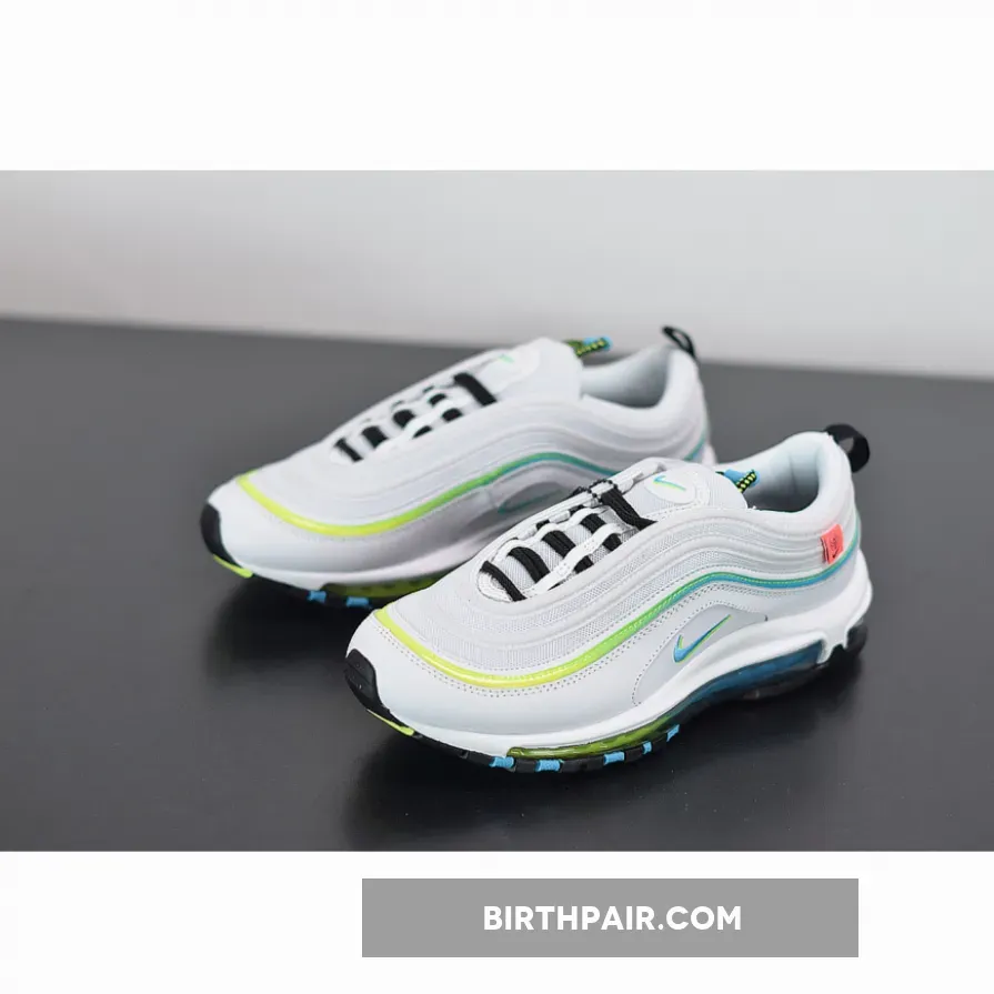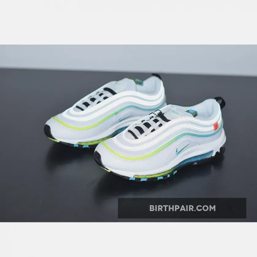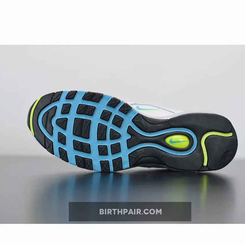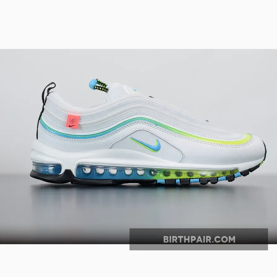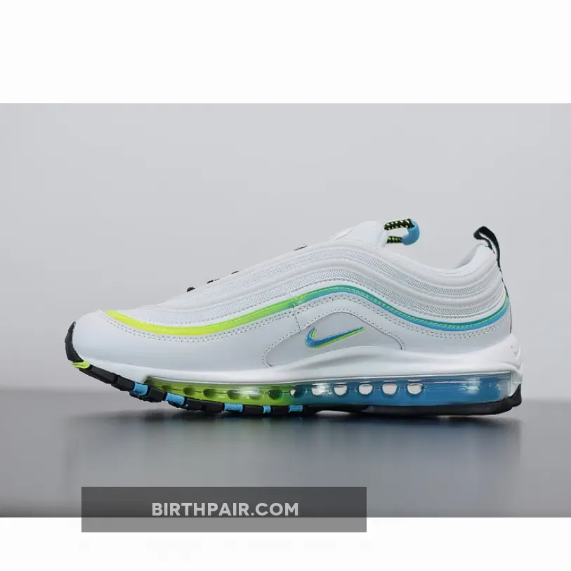 Featuring a crisp, White, Blue Fury, Black, and Volt color scheme, regardless of the Summer heat this Air Max 97 will keep your feet looking fresh all summer long. Calling for a bright white leather upper, gradient tones are used across the wave-like overlays featuring blue on the heels which gradually changes to bright volt at the toes. The coveted Air Max unit matches perfectly with the gradient vibe and showcases the same makeover from heel to toe as well.