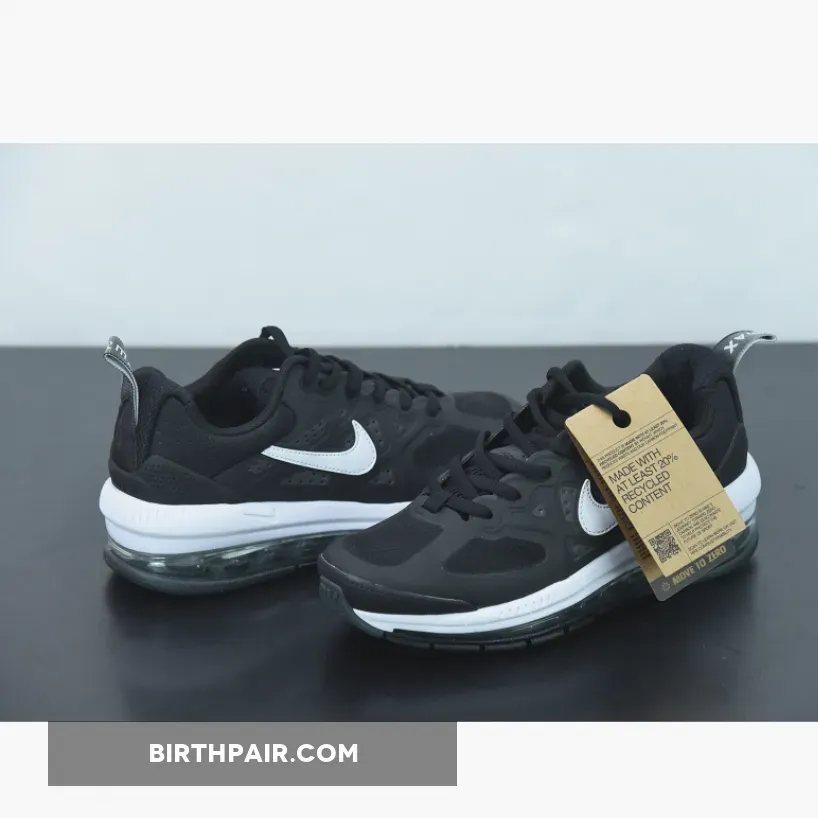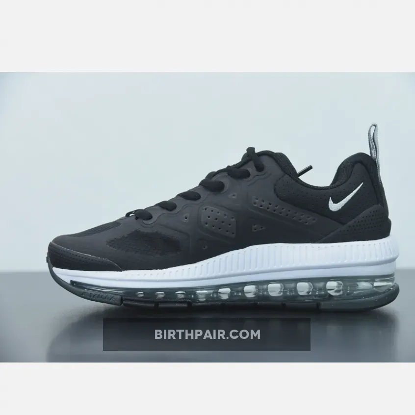 this Air Max Genome features a Black and White colorway. Its technical, easy-to-style upper features a mixture of materials including sleek no-sew skins, airy mesh, and durable TPU around the heel. The low-profile model comes with a full-length Air unit and is completed with a rubber outsole.