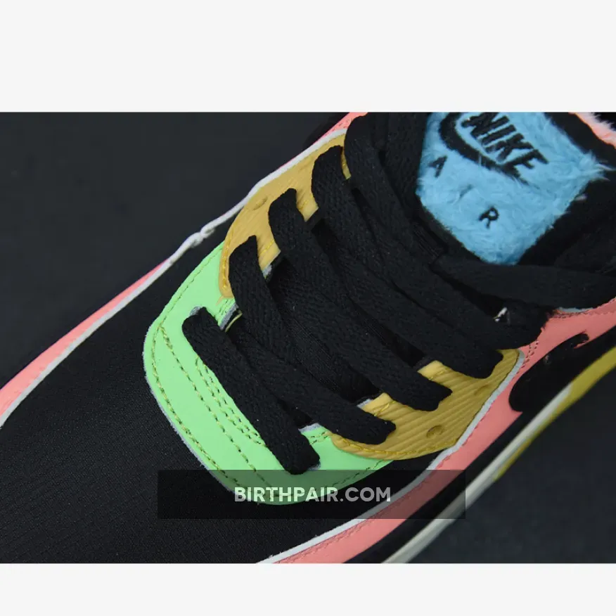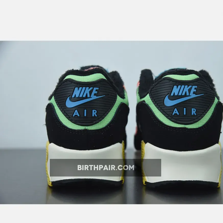 The Nike Air Max 90 ‘Fur Multi-Color’ updates Tinker Hatfield’s vintage runner with a multicolor composition on the upper, featuring a black textile toe box, pink leather overlay and lime green textile around the collar. A black leather mudguard is complemented by a matching black Swoosh, covered in a furry texture that’s repeated on the tongue tag and interior lining.