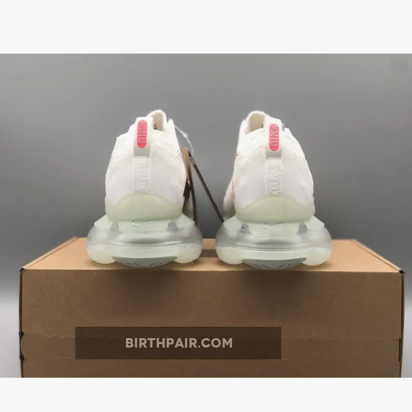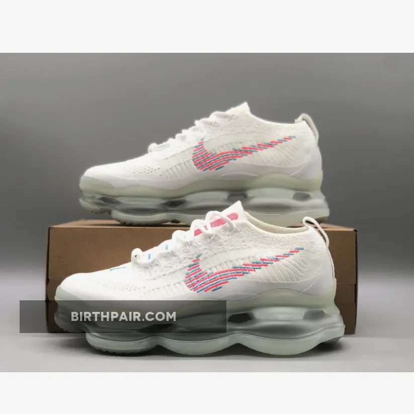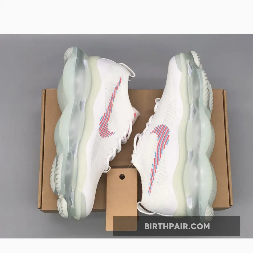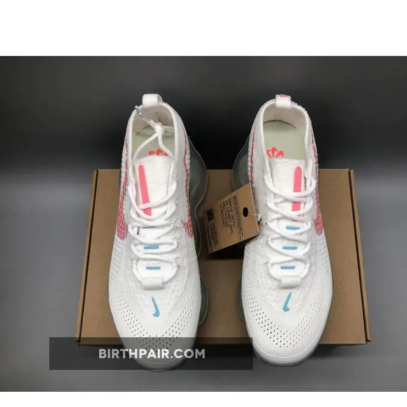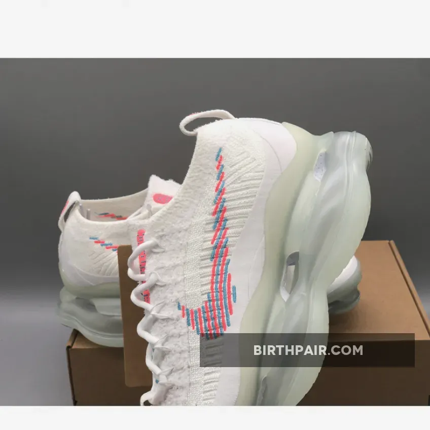 This Nike Air Max Scorpion comes dressed in a White, Lagoon Pulse, and Hot Punch color combination. A singular tone stretches atop the Flyknit and chenille construction of the upper with crisp white hues further enveloping the laces, pull tabs and color-matched full-length TPU mudguard.