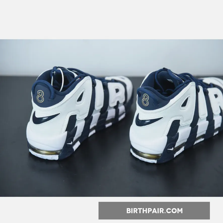 The 2020 edition of the Nike Air More Uptempo ‘Olympic’ brings back the shoe that Scottie Pippen wore during the ’96 Summer Olympics. The build is mostly true to the original, highlighted by white leather ‘AIR’ lettering on a navy nubuck upper. The same color blocking is applied to the midsole, fitted with Air sole units for lightweight cushioning. Scottie Pippen’s Olympic jersey number is outlined in metallic gold on the heel tab, positioned directly above a navy jewel Swoosh.