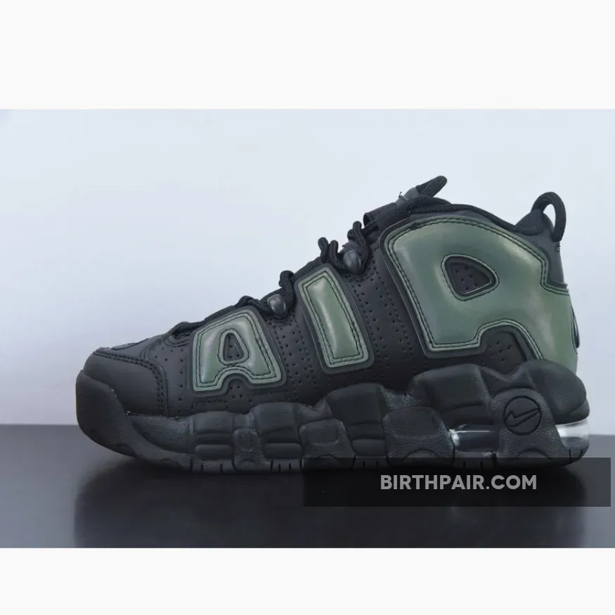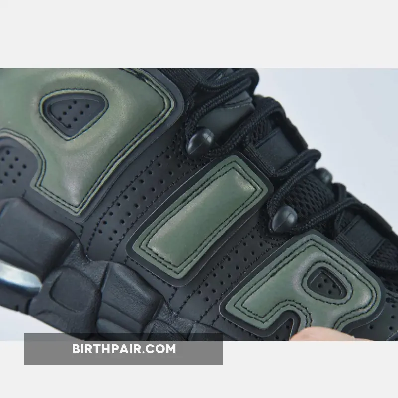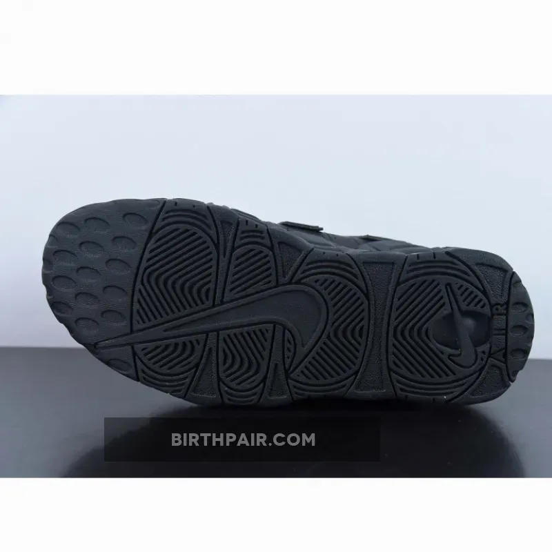 Covered in a black leather throughout the majority of the upper, this Air More Uptempo is then hit with perforations for some added breathability. The highlight of this colorway is the reflective 3M detailing on the “AIR” branding on the side panels as well as on the heel which come to life when the shoe is hit by a flash of light.