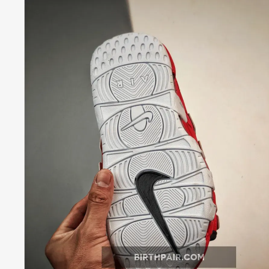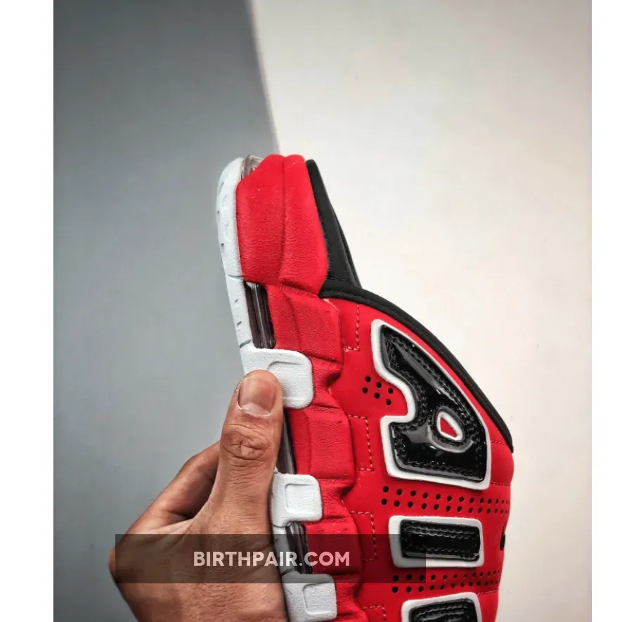No mystery to the OG, this red/black/white colorway has been a regular sighting for the Air More Uptempo given its adjacent nature to classic Chicago Bulls colors.