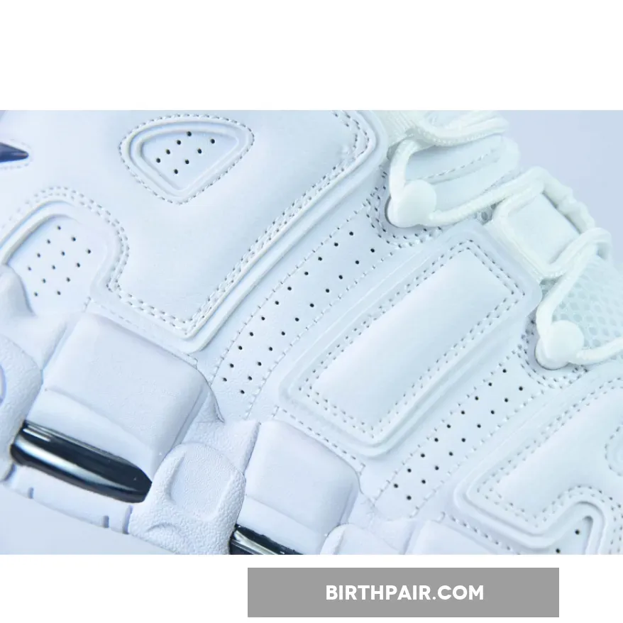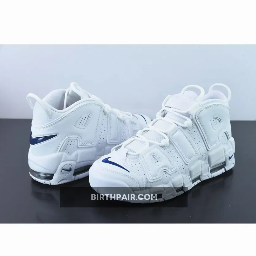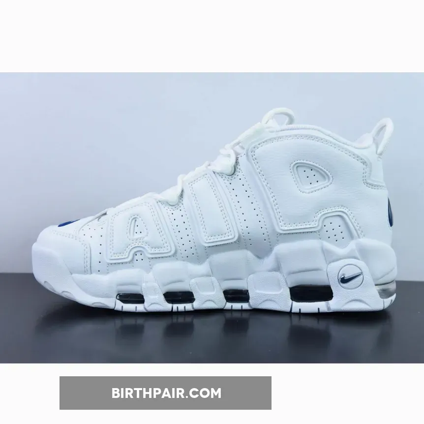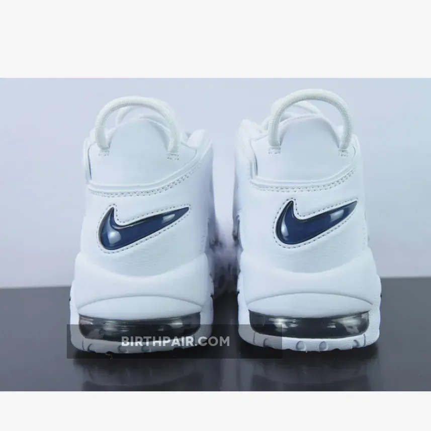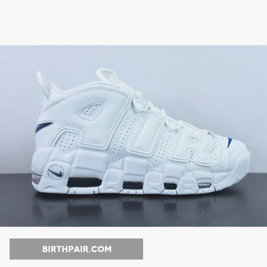 While the Nike Air More Uptempo silhouette has always had playful and colourful releases, it now has a new, clean variant with a minimalist approach. Introducing the Nike Air More Uptempo White Navy. The colourless design is interrupted by Midnight Navy accents, the mini Swooshes on the toe box, the raised Swoosh badges on the lateral heel, and the jelly Swoosh on the heel tab.