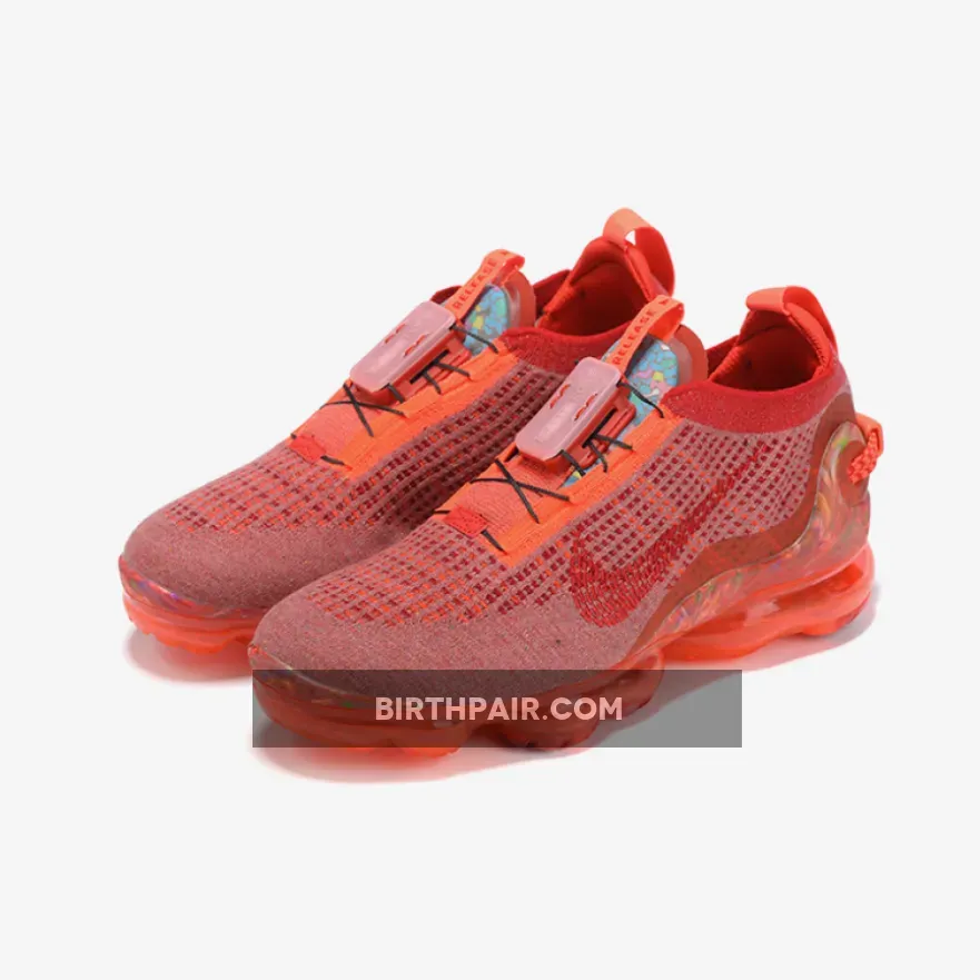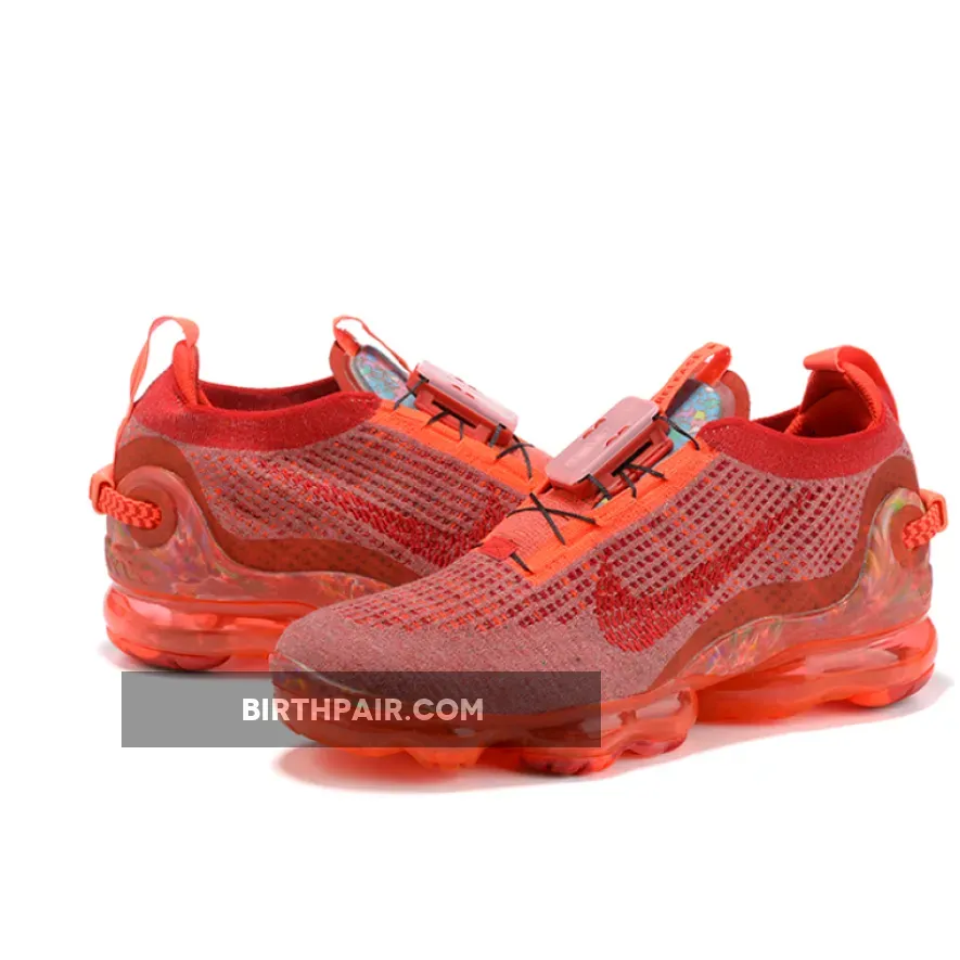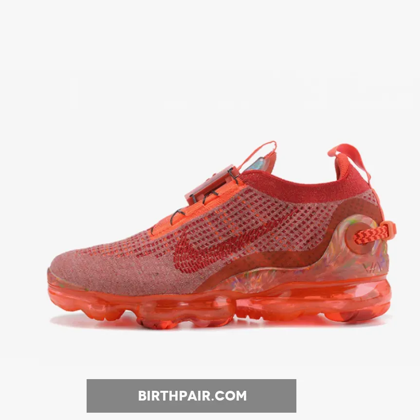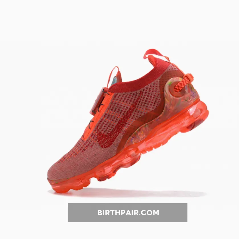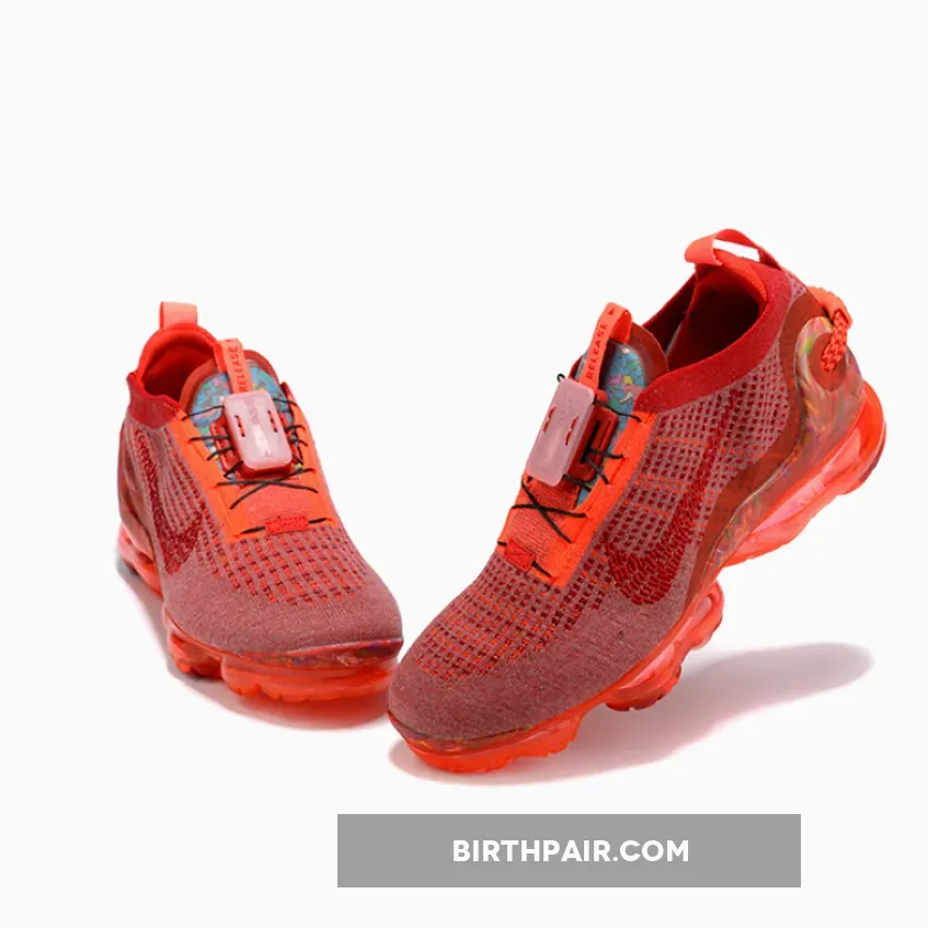 this Nike Air VaporMax 2020 comes dressed in a Team Red, Gym Red and Flash Crimson color combination. Just like the other releases, this pair comes constructed with Flyknit across the upper along with a FlyEase lacing setup and recycled polyester yarns. Shades of Red runs throughout the upper while a marble-like finish wraps the toe and heel counter. Completing the look is a recycled full length VaporMax Air unit.