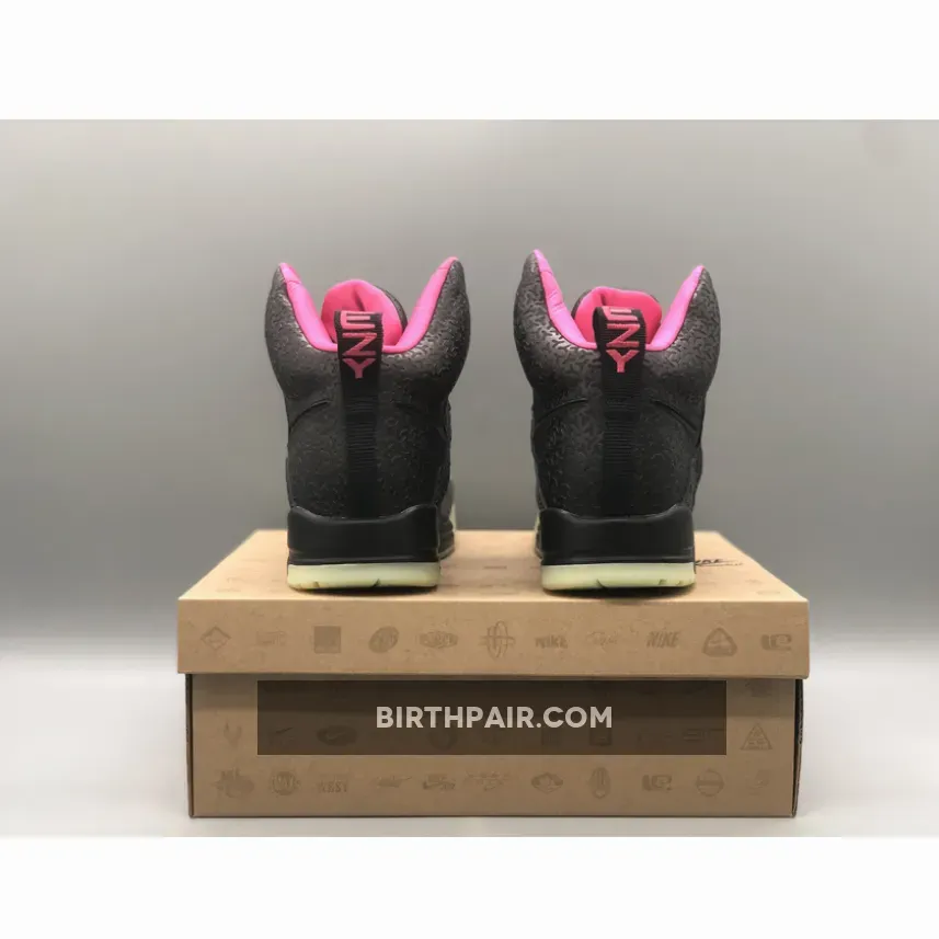 Dressed in a Black-based upper paired with Pink accents on the inner lining, lace-lock and “YEEZY” printed heel tabs. Its entire upper featured an all-over “Y” print lines completed with a glow-in-the-dark outsole.