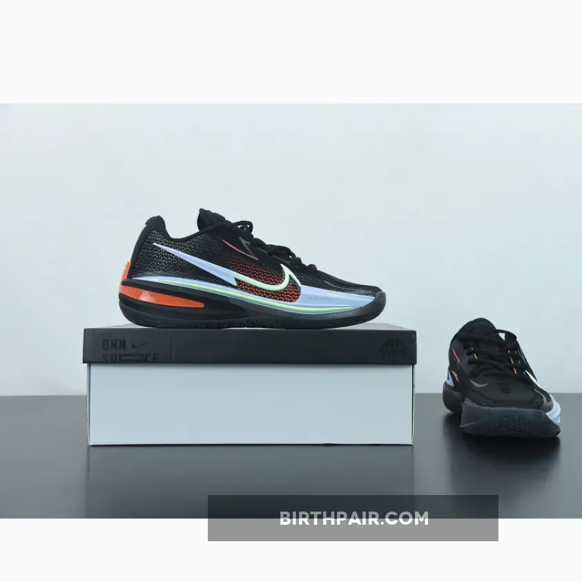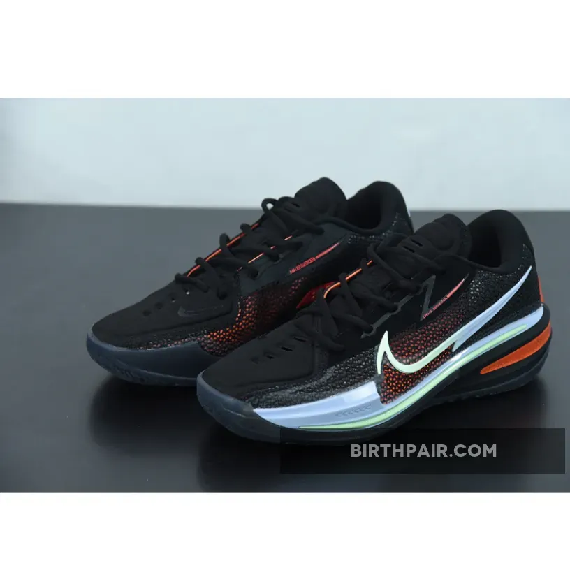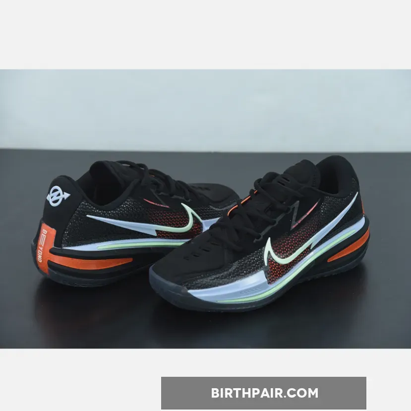 Nike’s latest model features a black color scheme mixed with hues of orange, light, blue, and sage. As for performance details, the offering is mixed with open mesh weaves, nylon panels on the toe, and instep allowing for breathability and durability. Lastly, the pair features unfilled Swoosh logos on the upper and Nike Air Zoom G.T. branding on the heel and outsoles.