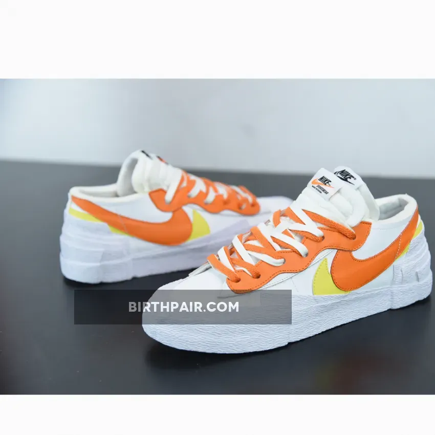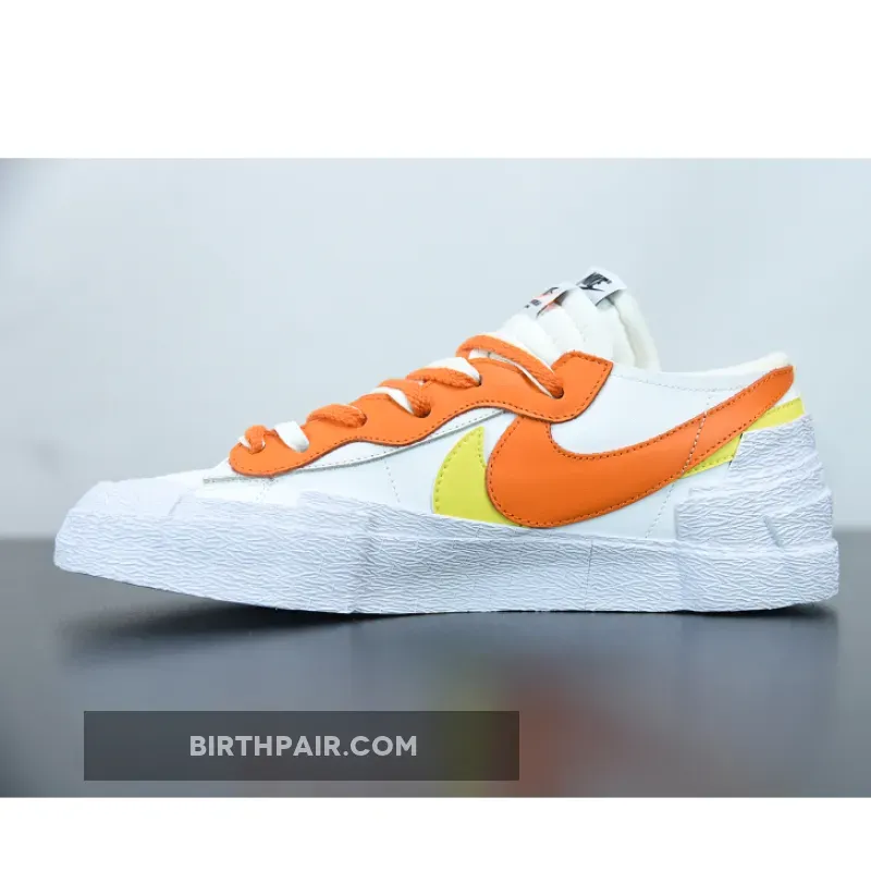 Japanese style icon Chitose Abe and her co-branded trainers with the Swoosh team is unquestionably one of the most loved designs in the sneaker industry. The sacai x Nike Blazer Low White Magma Orange is one of the newest renditions that will no doubt elevate your looks to the next level and of course, a pair that is highly worthy of adding to your collection. When the Blazer made its debut in 1973, it was met with an insane level of attention from the streets even though they were originally made for the hardwood court. That being said, it has hosted some of the most iconic collaborations in modern times.This pair put together by the power duo works atop the Blazer’s low-top construction that sees a crisp white coating throughout for a clean look. The counterparts then hold sacai’s signature accents in an orange and yellow hue, double Swoosh logos, double tongues, and dual-stacked midsole. Other traditional Nike branding features are still present too.The sacai x Nike Blazer Low White Magma Orange is an absolute must-cop for any avid Nike shoe collectors.
