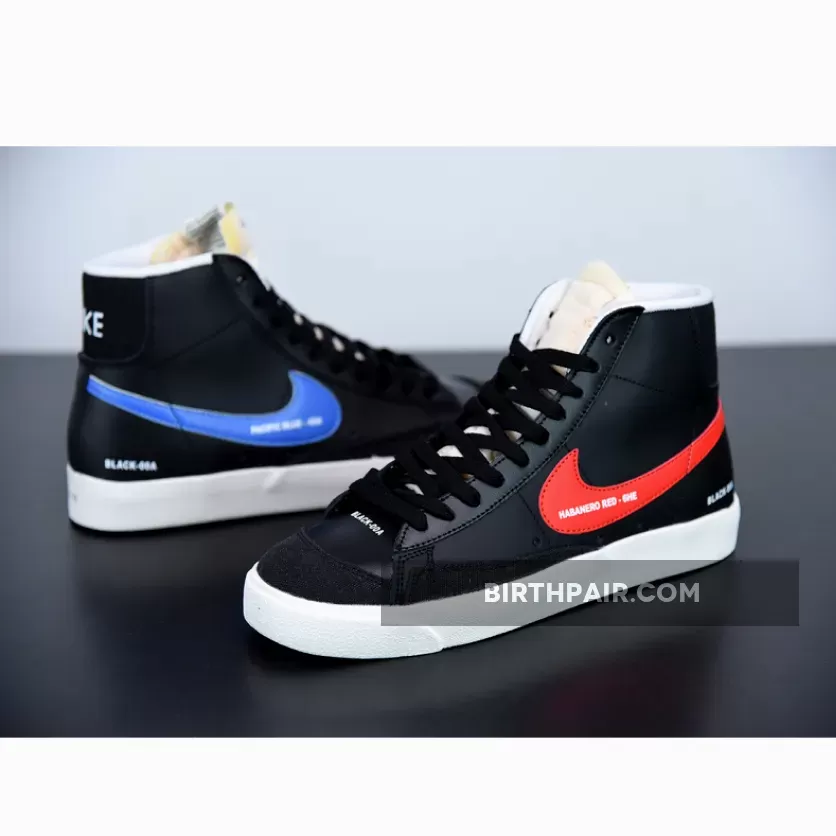 For example, the swoosh along the white pair’s lateral is literally marked with “HABANERO RED,” its accompanying “6HE” color code written immediately after. This treatment is mirrored along the other checks whose alternating set of four is rounded off with a variety of tones, some different and others the same as the black alternative that follows. Elsewhere, the construction is quite ordinary, the overlays, heel tab, and main leather body a close match in either neutral.