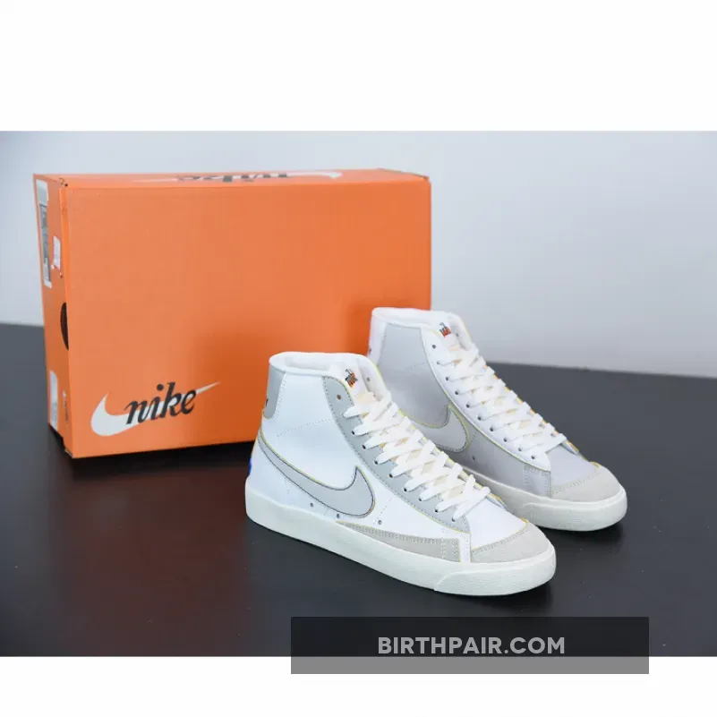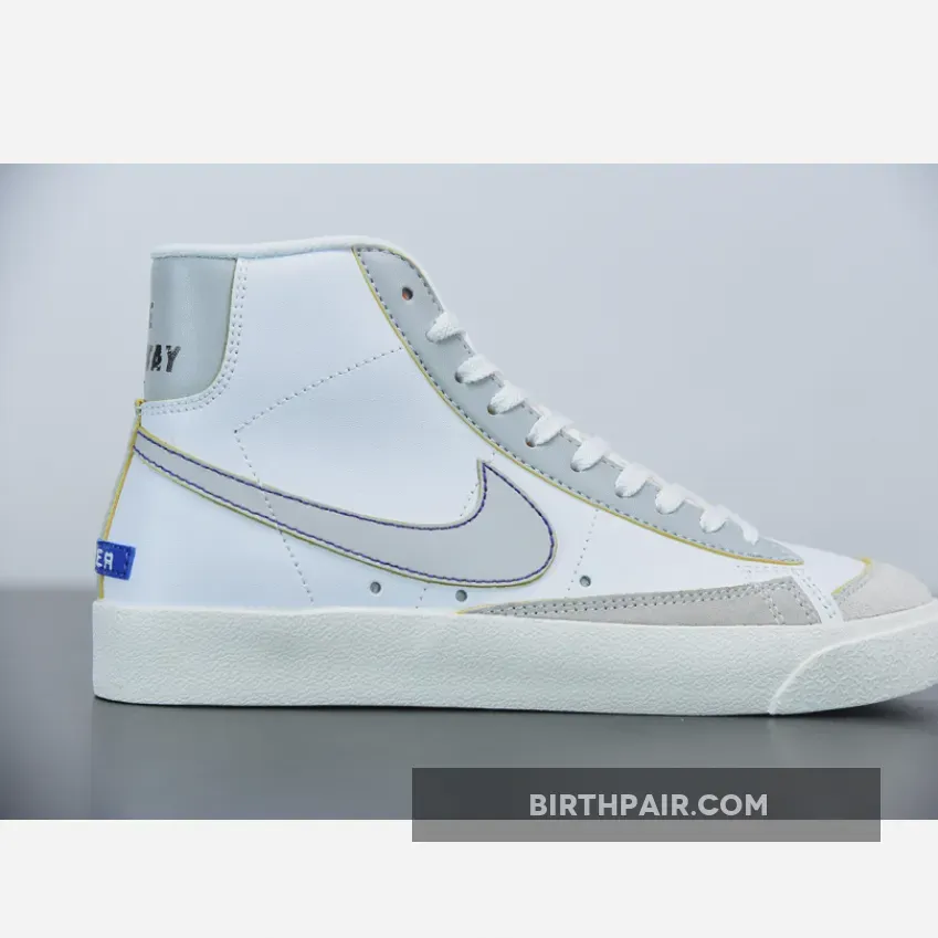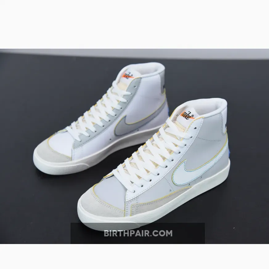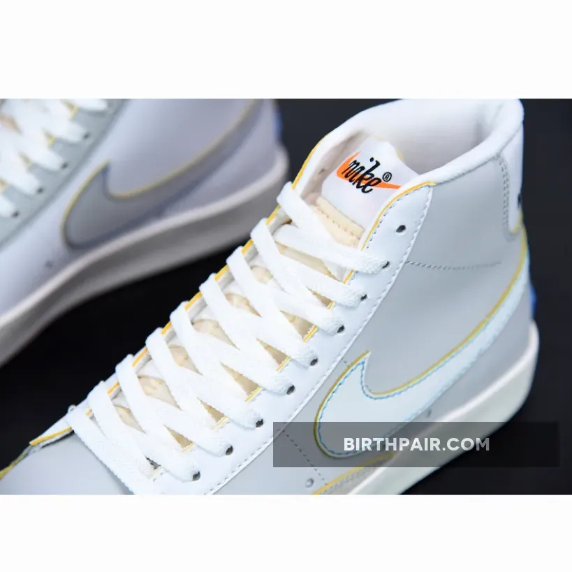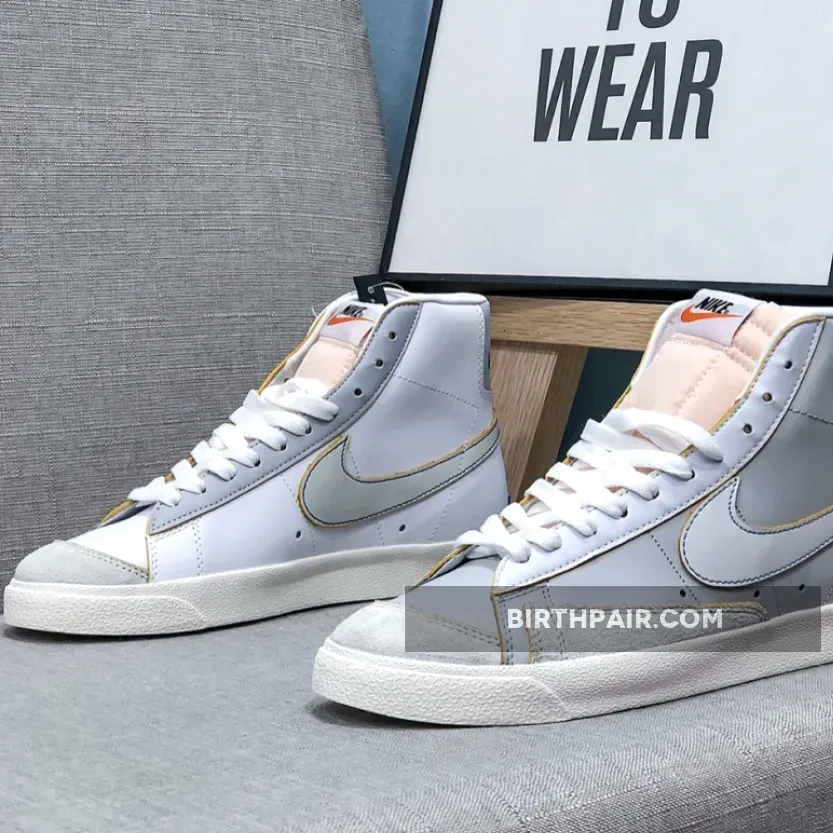 you’ll find a bright blue underlay that matches with its bordering exposed stitchings. In term of the lateral/medial sides, they split between a light grey exterior on the former and angelic outers on the latter. Moreover, the heels trade out the normal “Nike” text for “The New Way”, and the lower rear spells out the shoe’s moniker in paint-like font.