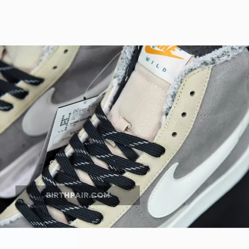 the pair here opts for an arrangement of neutrals. Along the suede eye stay, toe cap, and forefoot panel, three shades of tan take the lead, accenting over a canvas frame tinged in a dark, earthy grey. Swooshes then dress the profile in white leathers, while the heel tab behind and laces above contrast in black. Elsewhere, within the lining, the smiling Hike Nike man rests cozy atop a bed of warming furs.