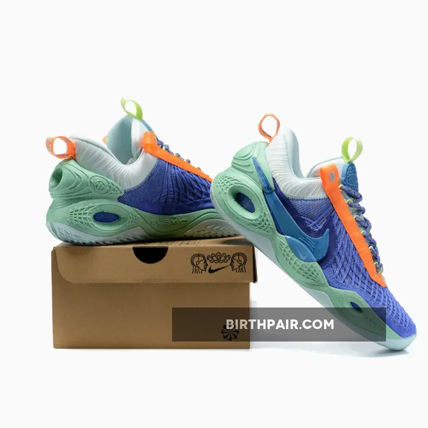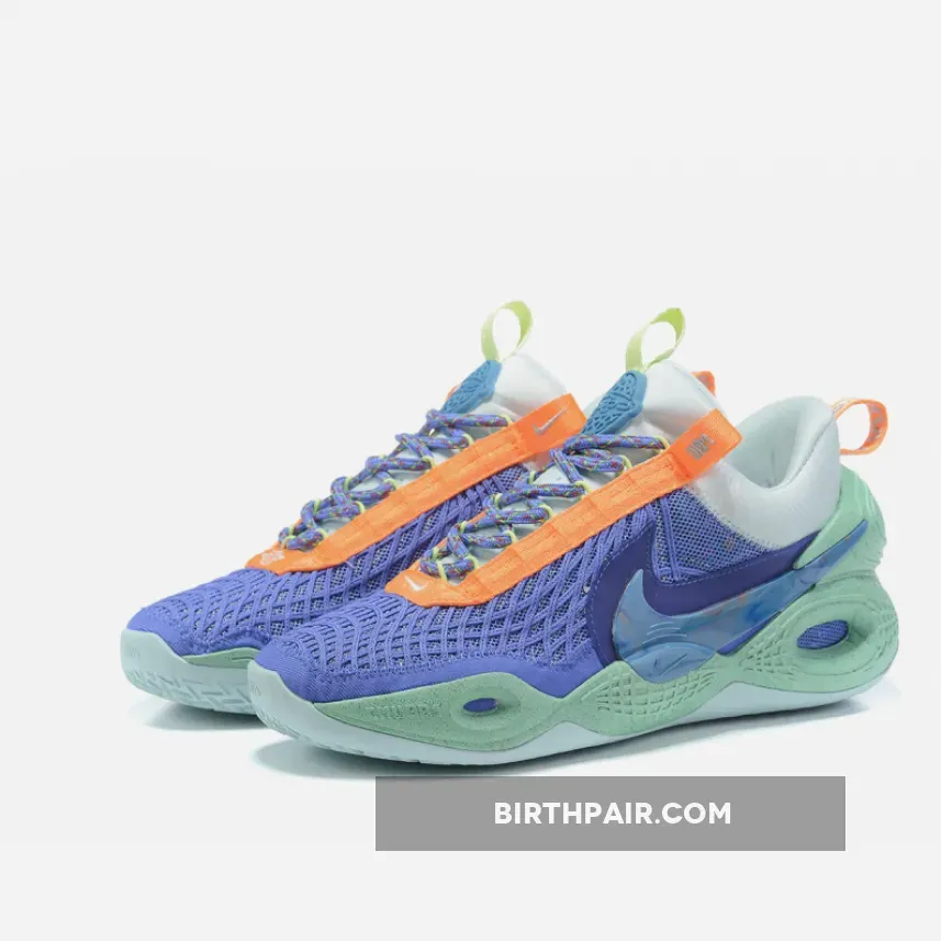 The Nike Cosmic Unity comes with 25% recycled content by weight, which is achieved in part by the Royal Blue textile across the upper made with recycled cable yarn. We also have a full-length Zoom Air Strobel that uses recycled TPU. Lastly, the laces, liner, and marble Swoosh utilizes recycled materials.