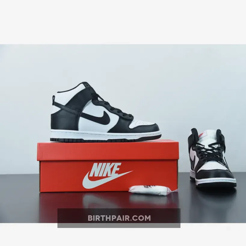 The Nike Dunk High goes back to its OG “Panda” look with its Nike Dunk High Panda Black White Womens.This simple shoe has a smooth and buttery leather base in pure white showing on the perforated toe box, the quarter and the collar. The overlays are smooth leather as well but in pitch black on the toe cap, mudguard, eyestay panel and foxing. The signature profile Swooshes on both the medial and lateral sides are also smooth leather in pitch black.