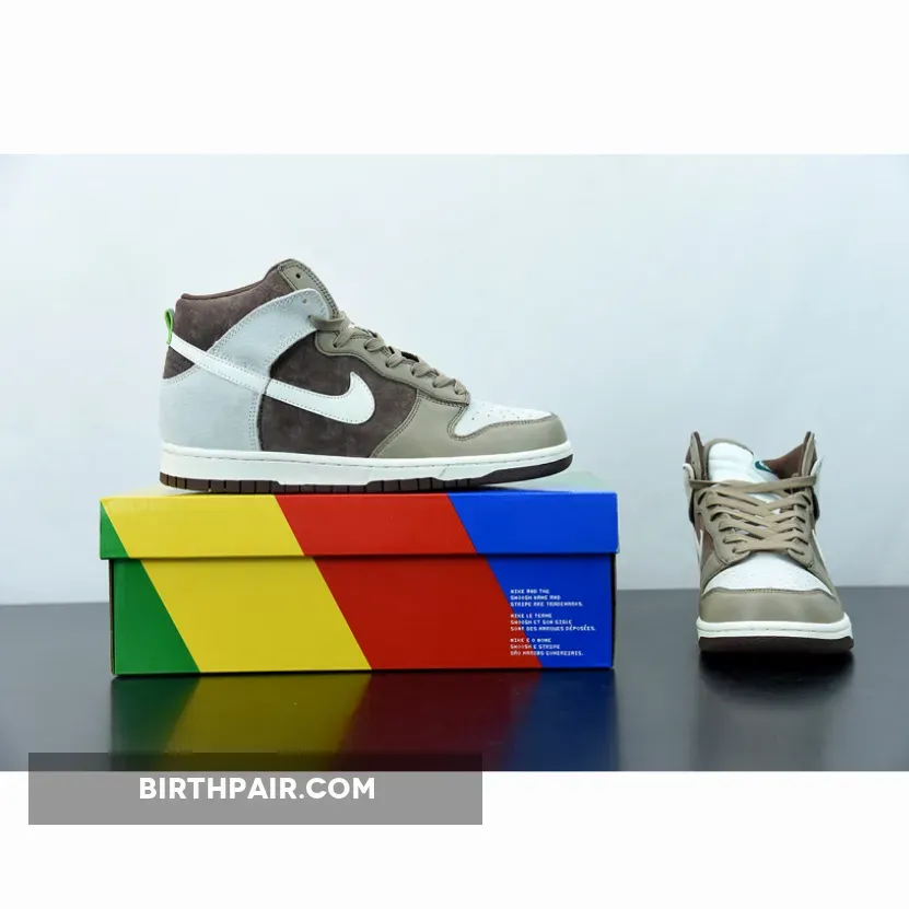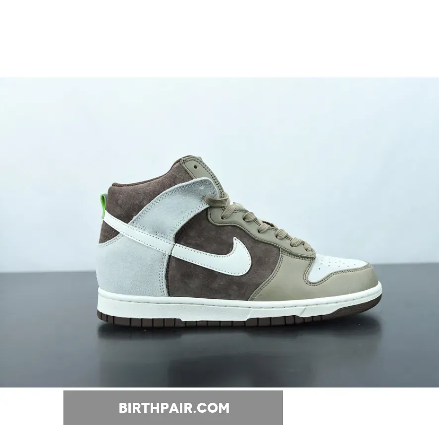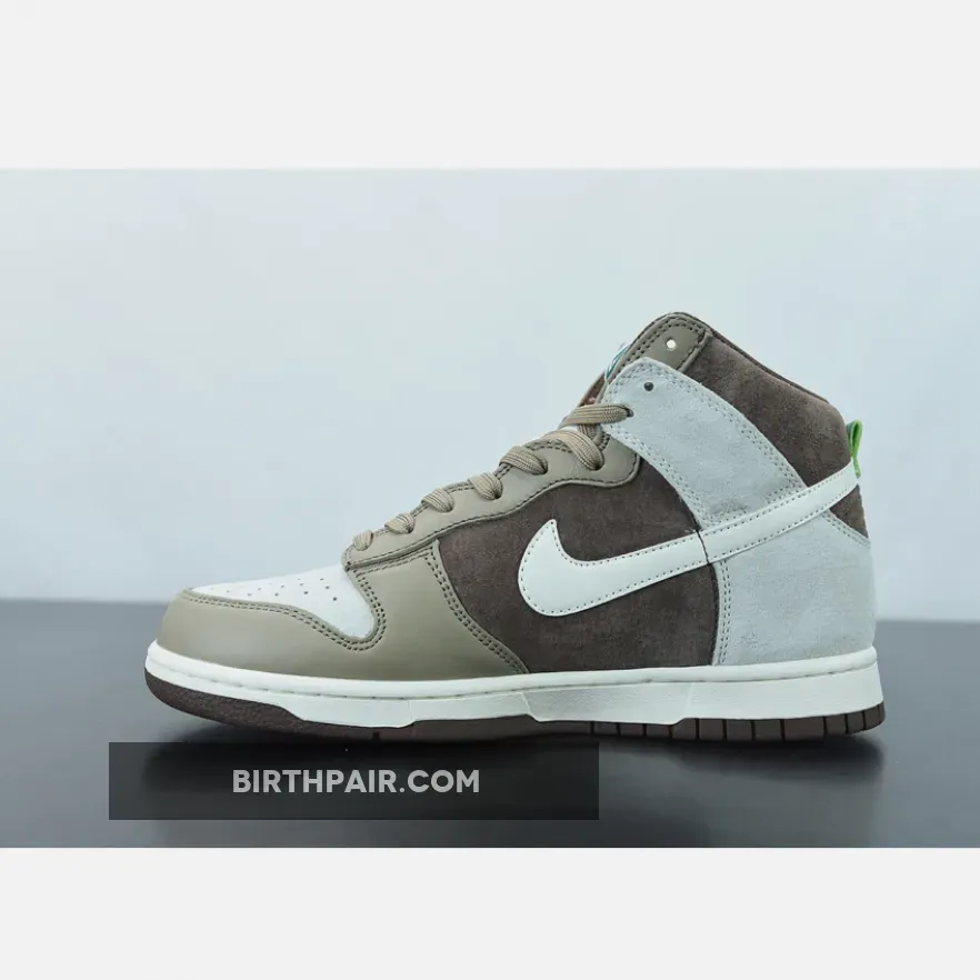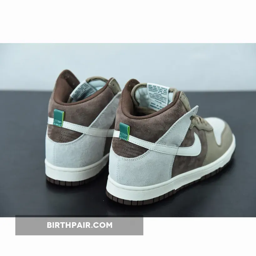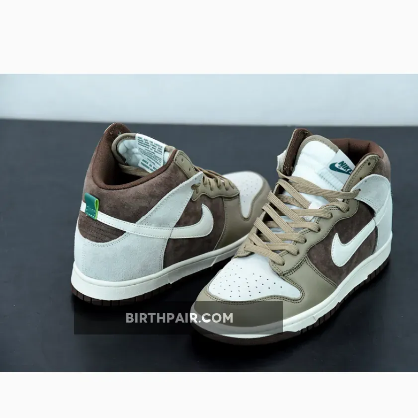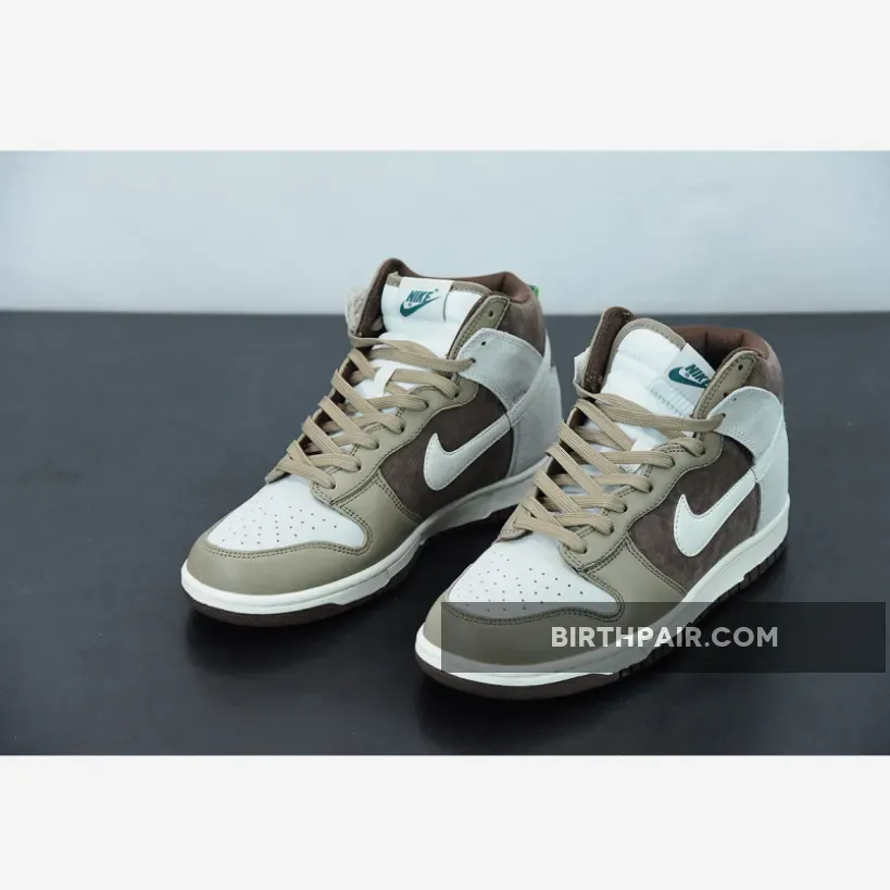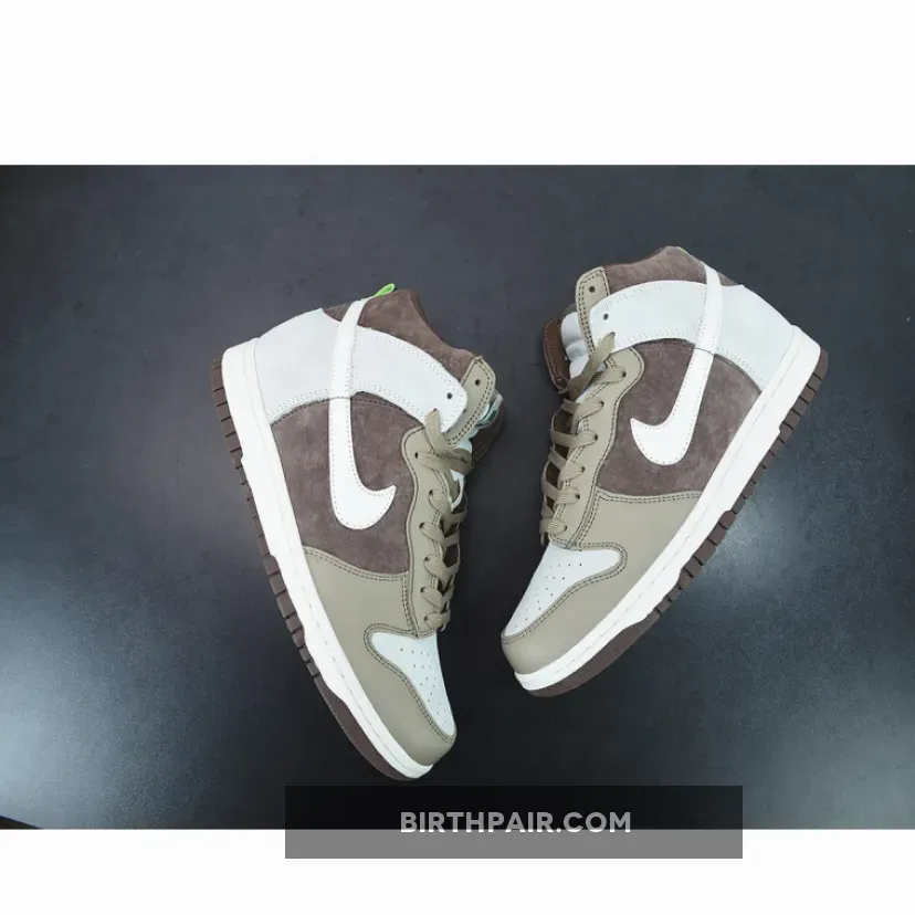 Dressed in a Sail, Khaki, and Light Chocolate color scheme. This Nike Dunk High comes constructed in a mix of suede and leather in a mix of Sail and Brown hues.