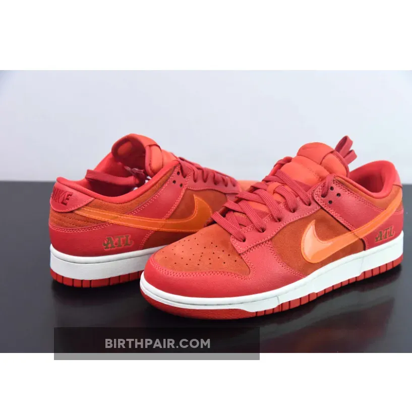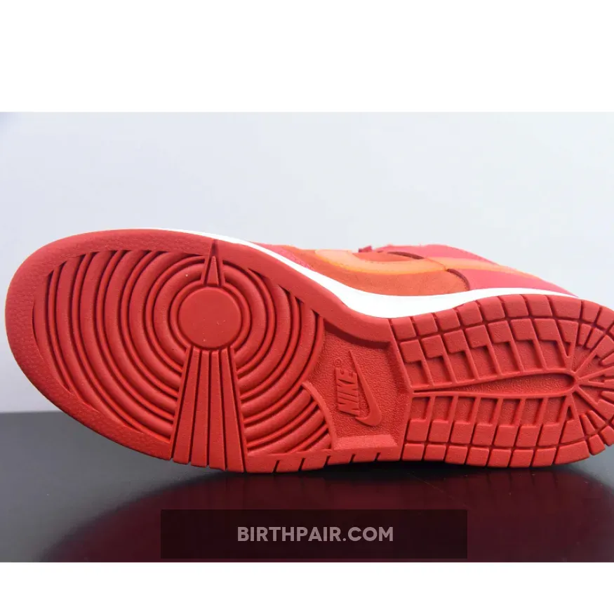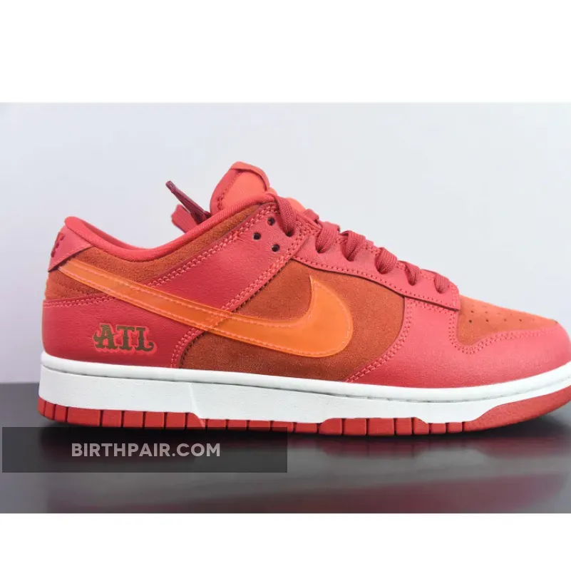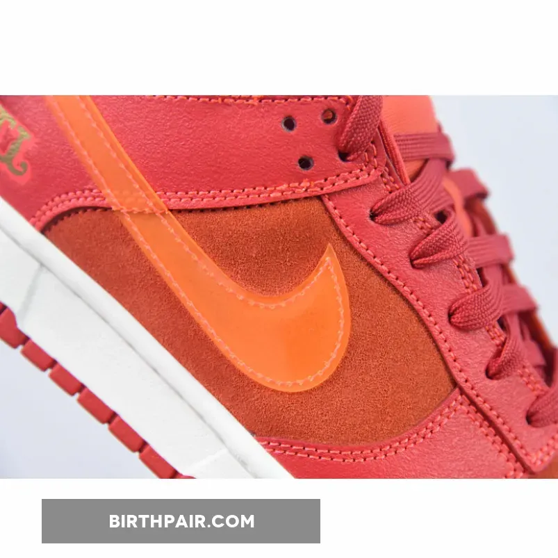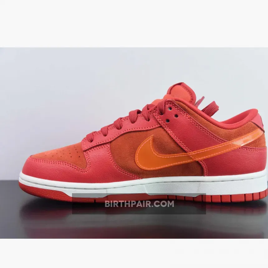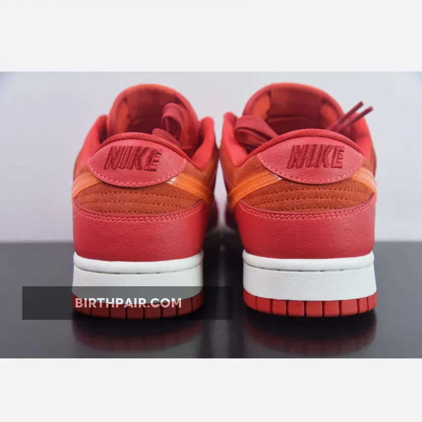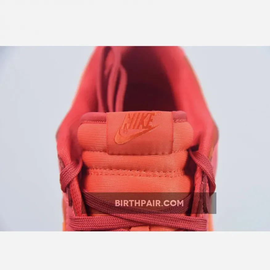 This offering of the Nike Dunk Low sports a Crimson Red base constructed in a mix of suede and leather materials with mesh tongues and lining. The Nike Dunk Low is constructed with a mix of leather and suede materials along with mesh tongues and lining. The suede highlights the entire upper and the overlays, while the Swoosh features an orange tint and is made of patent leather.