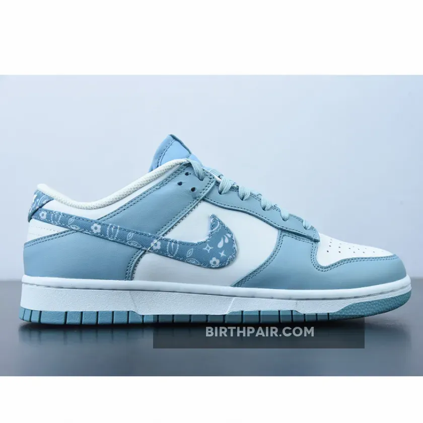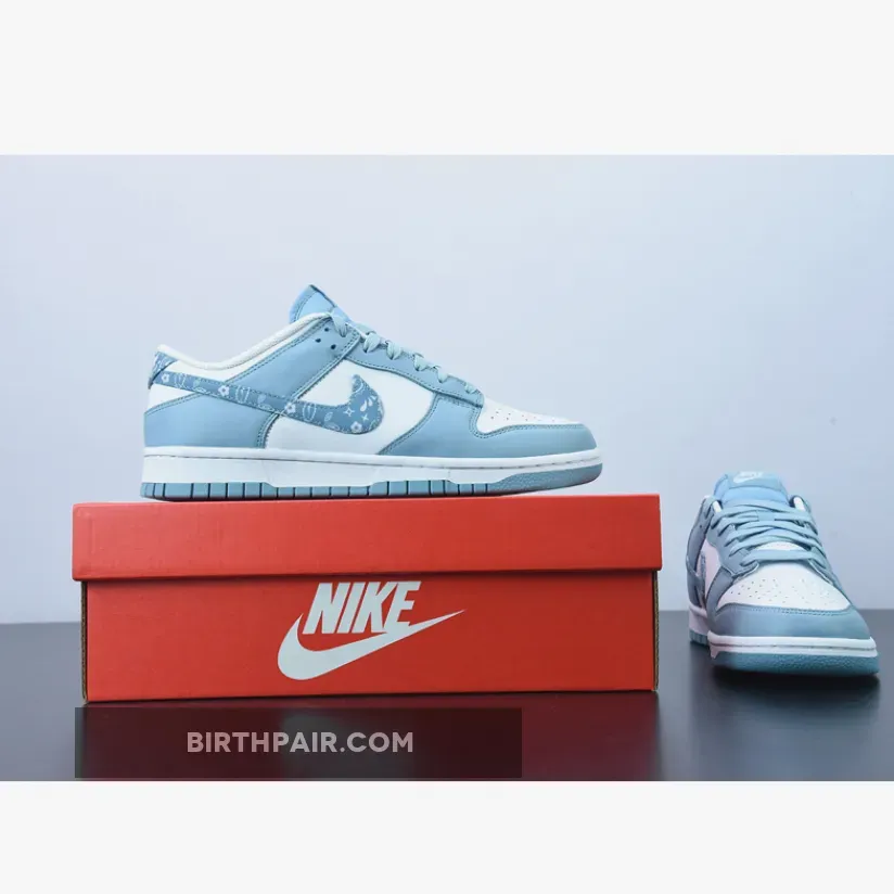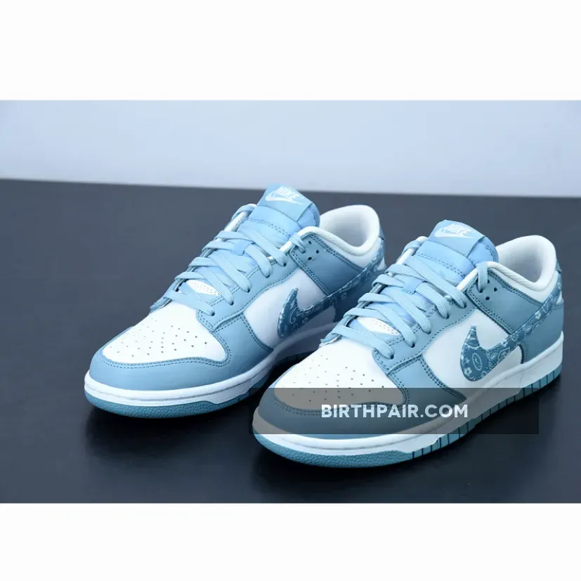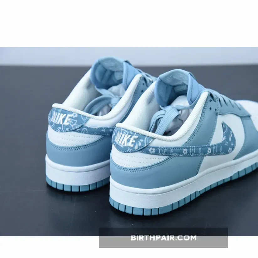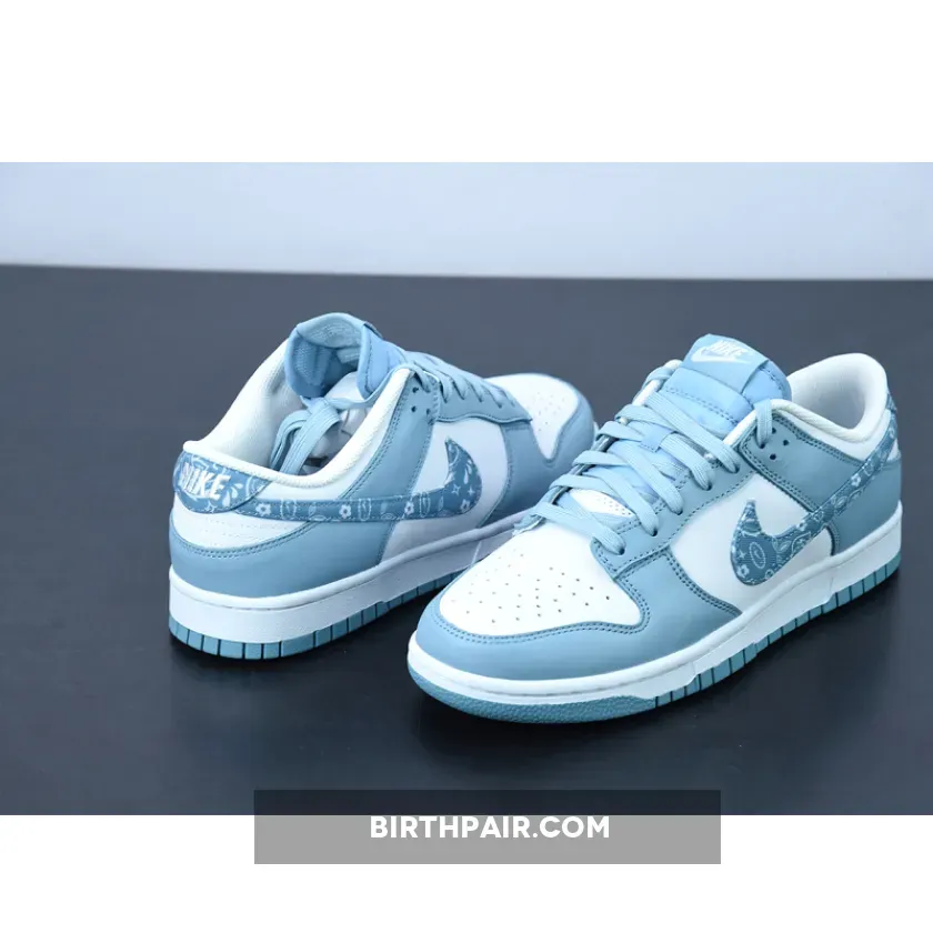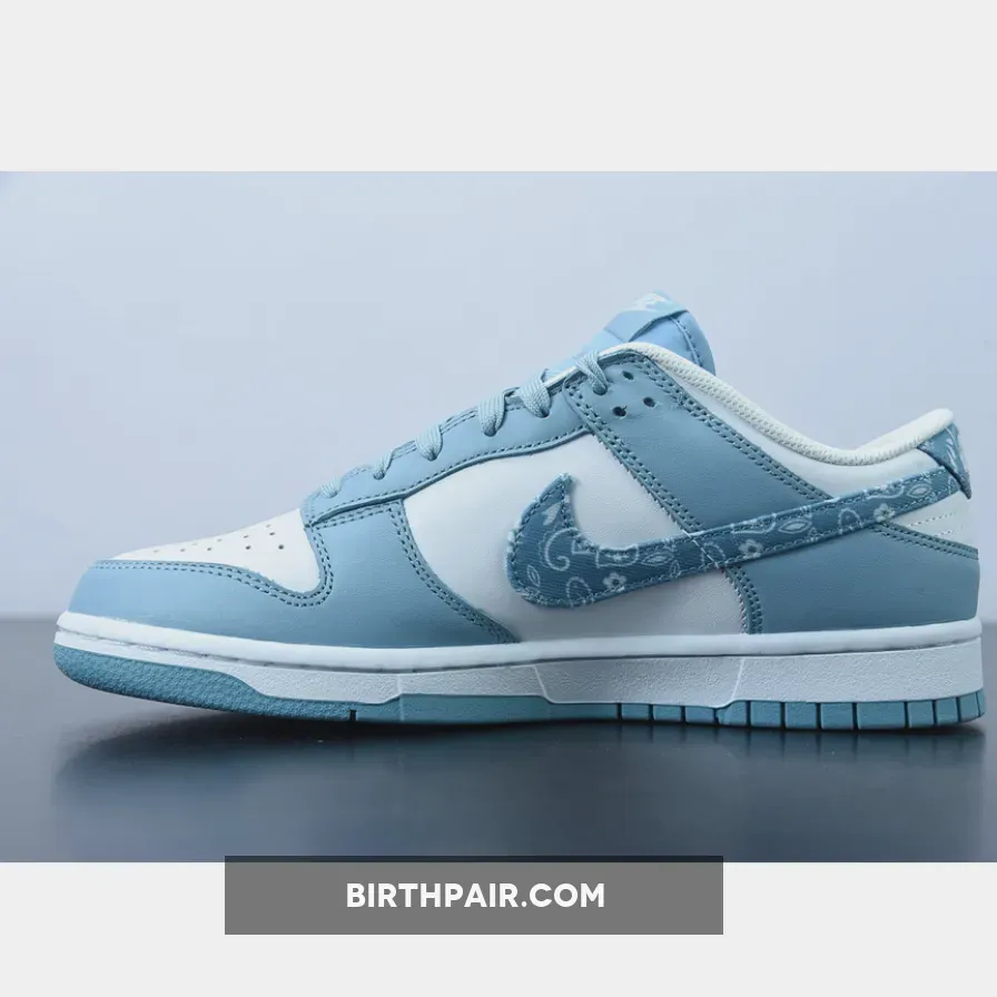 The Nike Dunk Low joins Nike’s “Paisley Pack.” Its latest iteration is the Nike Dunk Low Blue Paisley.The base of the upper is smooth and perforated premium leather in white while the overlays on the toe cap, the mudguard, eyestay panel and foxing are in a pretty teal blue, matching the nylon tongue and laces. The signature profile Swooshes on both the medial and the lateral sides carry the titular paisley print in white and teal as does the heel tab. Nike branding in white on a slightly lighter teal sits on the tongue tab while the Nike text logo is embroidered in white on the heel tab. An all-white midsole and a teal rubber outsole complete the look.Bag the Nike Dunk Low Blue Paisley on Our Store Supplier app and never miss recent sneaker drops from Nike.