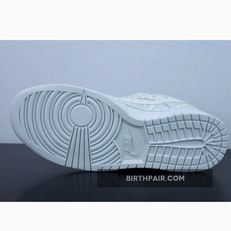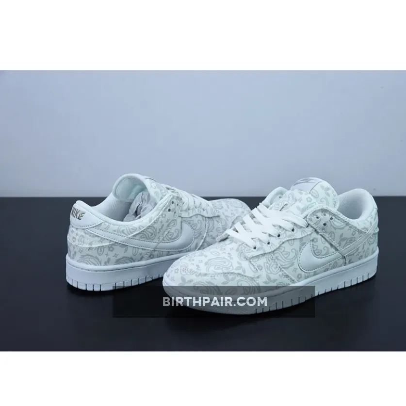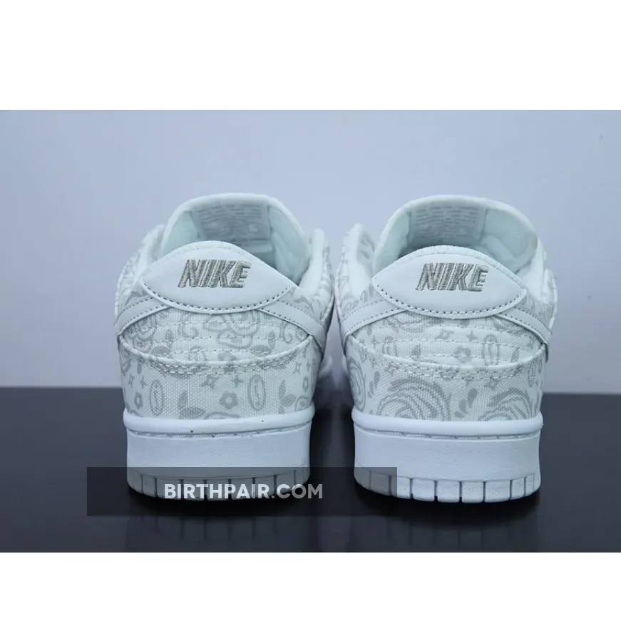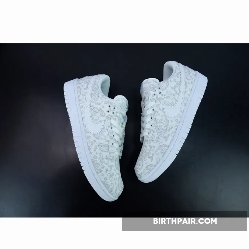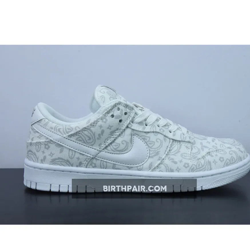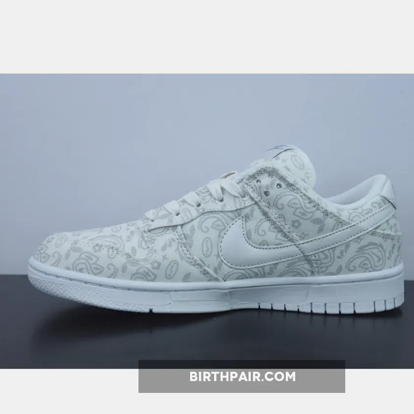 The ‘80s’ hoop star, the Nike Dunk Low, has an attractive new iteration with a boho aesthetic. Meet the Nike Dunk Low White Paisley. This Dunk Low has an all-canvas upper featuring a light grey paisley print from heel to toe. The signature profile Swooshes on the medial and lateral sides of the shoe, on the other hand, are smooth white leather. The laces and the mesh sock liner follow the colour scheme of the Swooshes.
