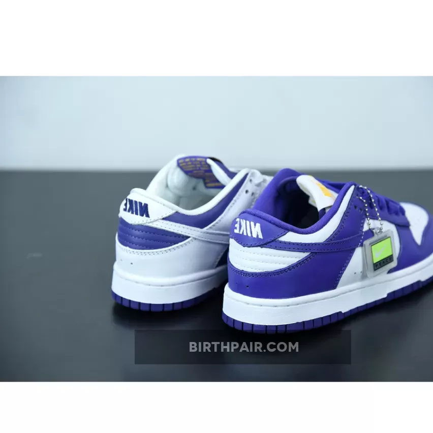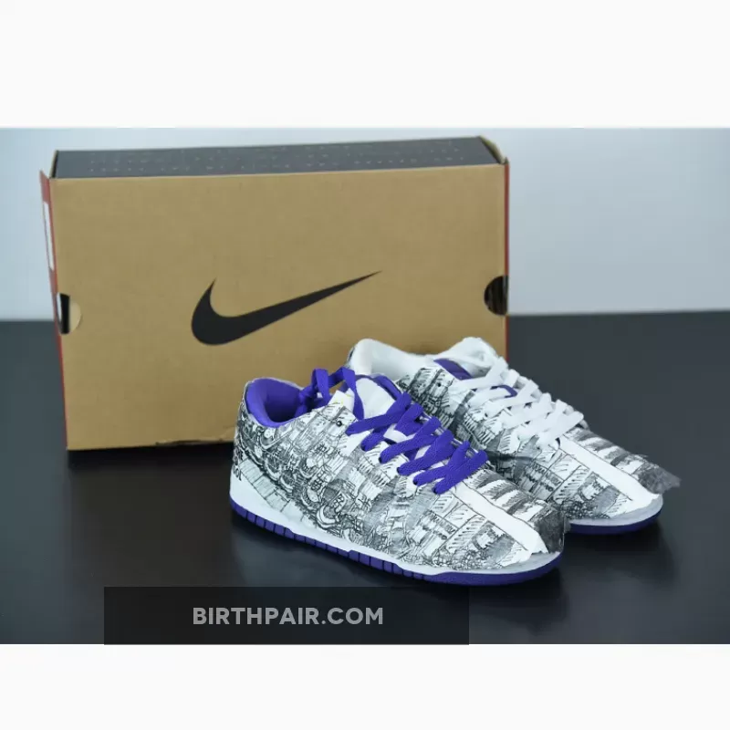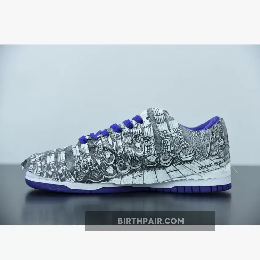In a similar design as the “Keep ‘Em Fresh” Air Force 1 Low, this Nike Dunk Low will also be wrapped in box tissue paper detailed with penciled illustrations honoring the original college colors campaign. Underneath, the Dunk Low features two mismatched colorways dressed in White and Purple with Gold branded tongues and flipped Swooshes. Each upper comes constructed in a mix of leather with ostrich leather overlays. The same graphics used on the tissue paper also appears on the insoles to complete the design.
