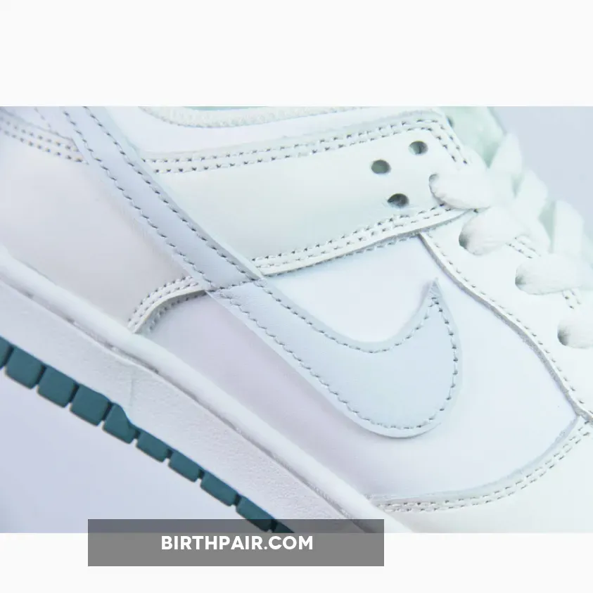 This makeup of the Dunk Low opts for a White leather upper paired up with matching mesh tongues and lining.