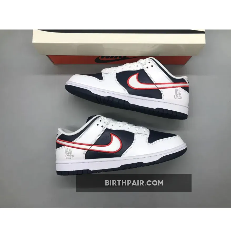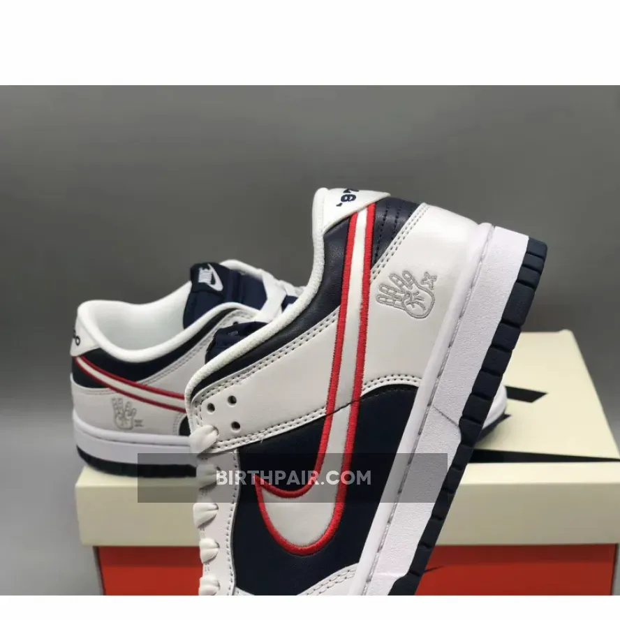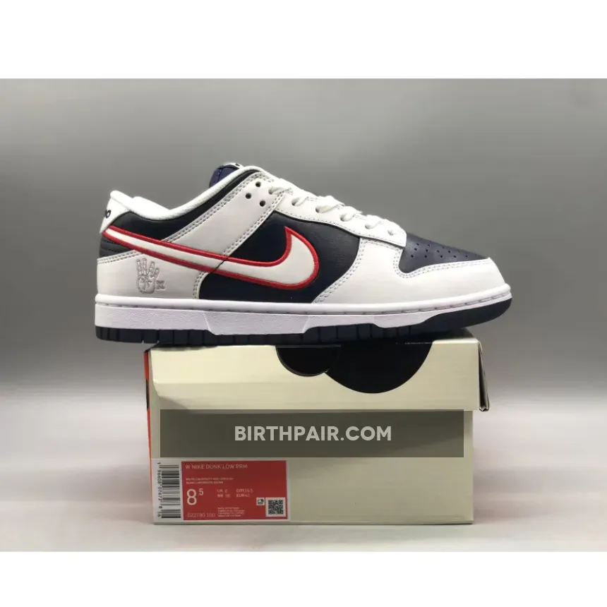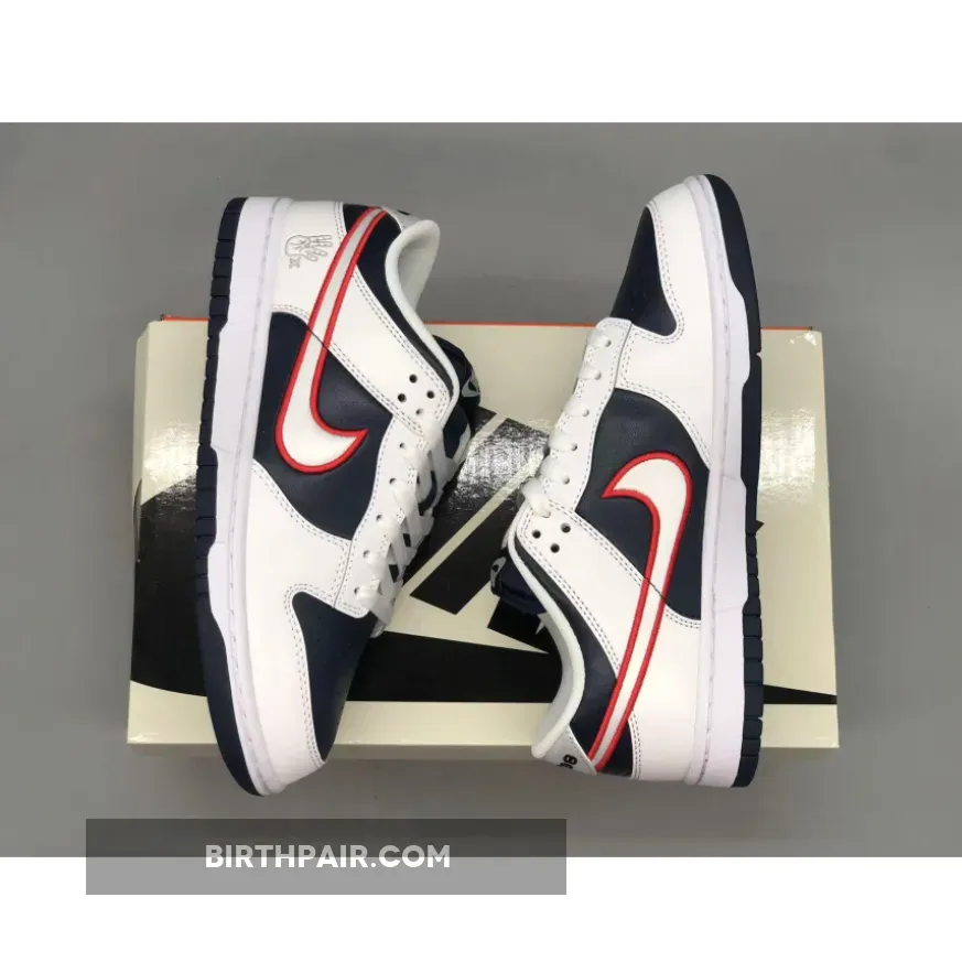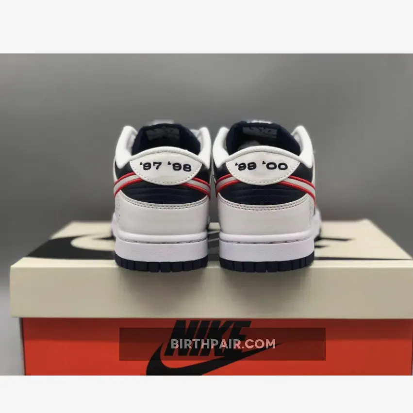 the Nike Dunk Low “Houston Comets Four-Peat” has an “Obsidian” leather base with “White” leather overlays and a “University Red” Swoosh that create a patriotic blend. The legendary four-peat is symbolized on the heel counter as it boasts a hand putting up the number four with a small times symbol (x) next to it. The sneaker is finished with consecutive championship years on the heel tab ranging from ’97 to ’00.