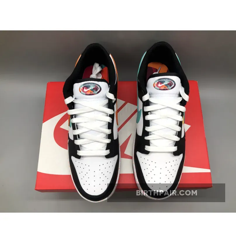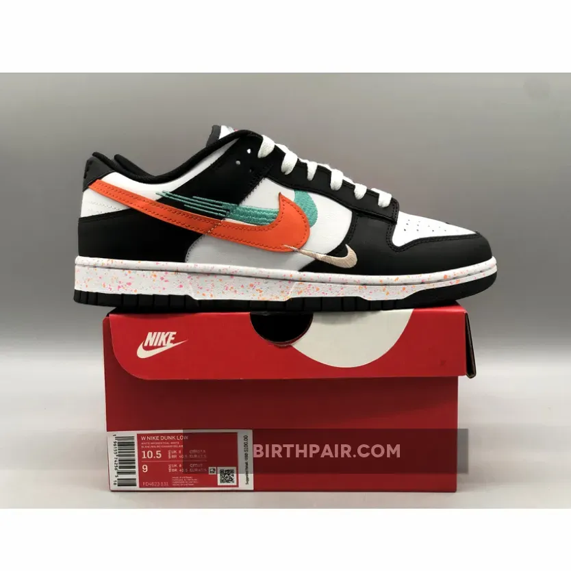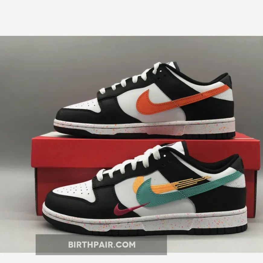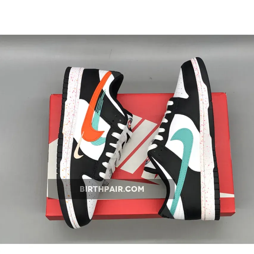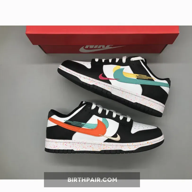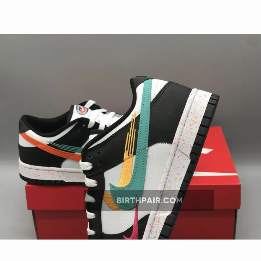 The special edition Nike Dunk Low WMNS” Lunar New Year” features a white leather base accented with contrasting black leather overlays, liner, and outsoles. Essentially a Nike Dunk Low Panda, what really helps this pair stand out is the branding which comes by way of the colorful movement-inspired Swooshes on the side panels which are either embroidered or made out of leather. Elsewhere you will find a colorful tongue patch housing a White Nike Swoosh, a speckled midsole, graphic insoles, blacked out Nike branding on the heels and White laces.