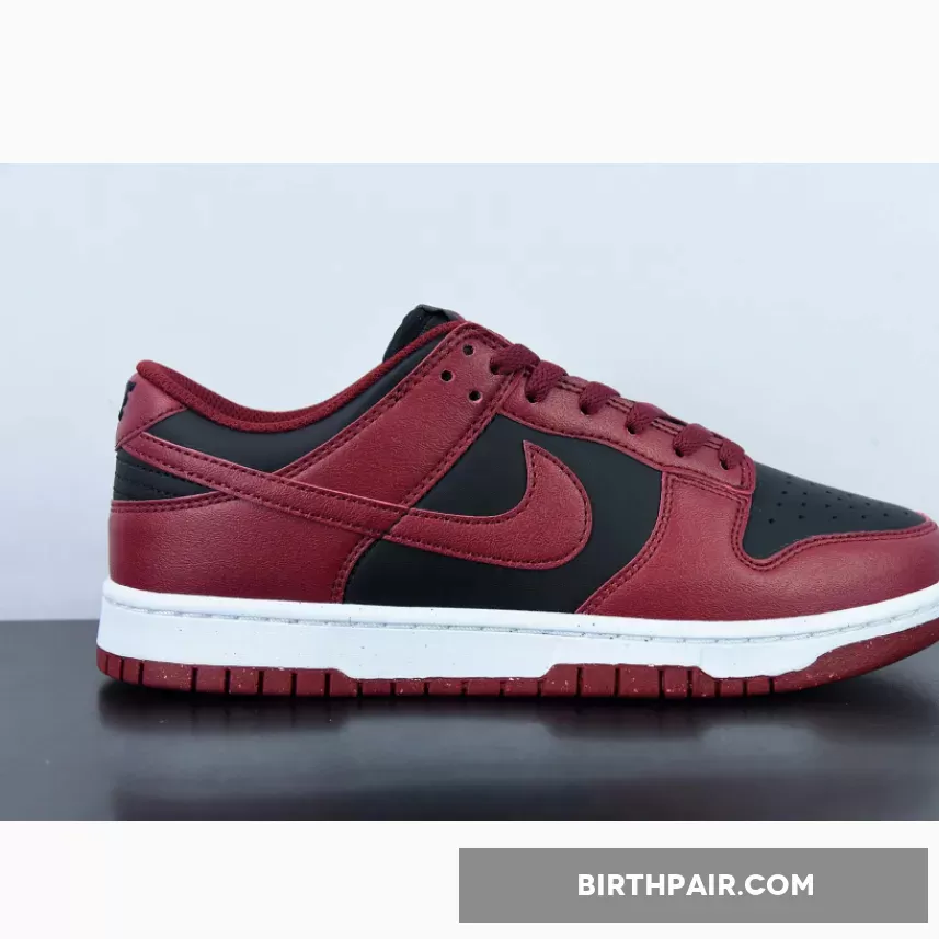 The Nike Dunk Low Next Nature is a special iteration of the Dunk silhouette which places an emphasis on sustainability and its latest colorway is revealed in a deep red and black finish.