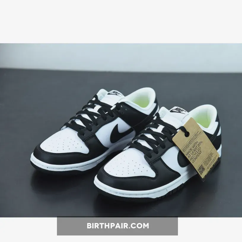 The upper is a crisp white on the toe box, quarter, sock liner, midsole and tongue, while the toe cap, heel overlay, eye stay, outsole and laces are black. The Nike logo on the tongue tab and the Nike text logo embroidered on the heel tab finish off the look. Don’t forget to use our Nike Dunk size guide to know the shoes fit.