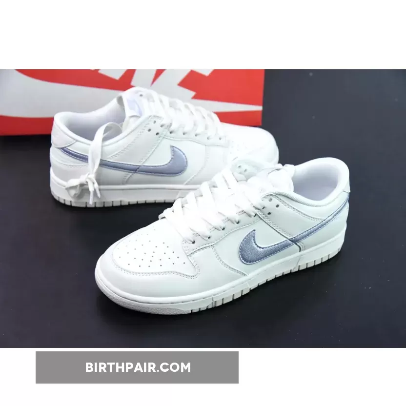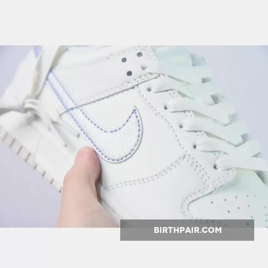 The Nike Dunk Low Oxygen Purple is a classic with a twist. This rendition is outfitted in premium white leather arranged in a panelled construction. It’s detailed with tonal stitching and finished with a Swoosh appliqué in metallic purple. The toe box is punctuated with neat perforation ports for optimum breathability, even during the hottest months. Flat laces floss up the tongue and lead to a Nike logo in the same hue as the Swoosh motif. A final branding cue comes in via the heel patch.
